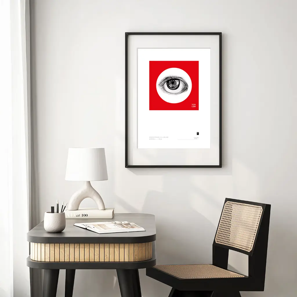 'London Eye Series - I C U - L D N - Red' - Limited Edition Print offers a fresh perspective on the city's beauty, inviting viewers to explore London in a new light. Whether you're a native Londoner or a curious traveler, this piece is a visual journey through the heart of one of the world's most beloved cities.Each intricately detailed landmark, from the majestic Tower Bridge to the historic Big Ben and of course the London Eye, is delicately woven into the fabric of the eye, creating a fascinating tapestry of urban wonder. As you gaze upon the ink strokes, let your imagination soar as you uncover hidden gems and familiar sights nestled within the eye's pupil.What can you see?Hint:Look for the London Skyline in the pupil of the eye.Limited 1st Edition of 100.