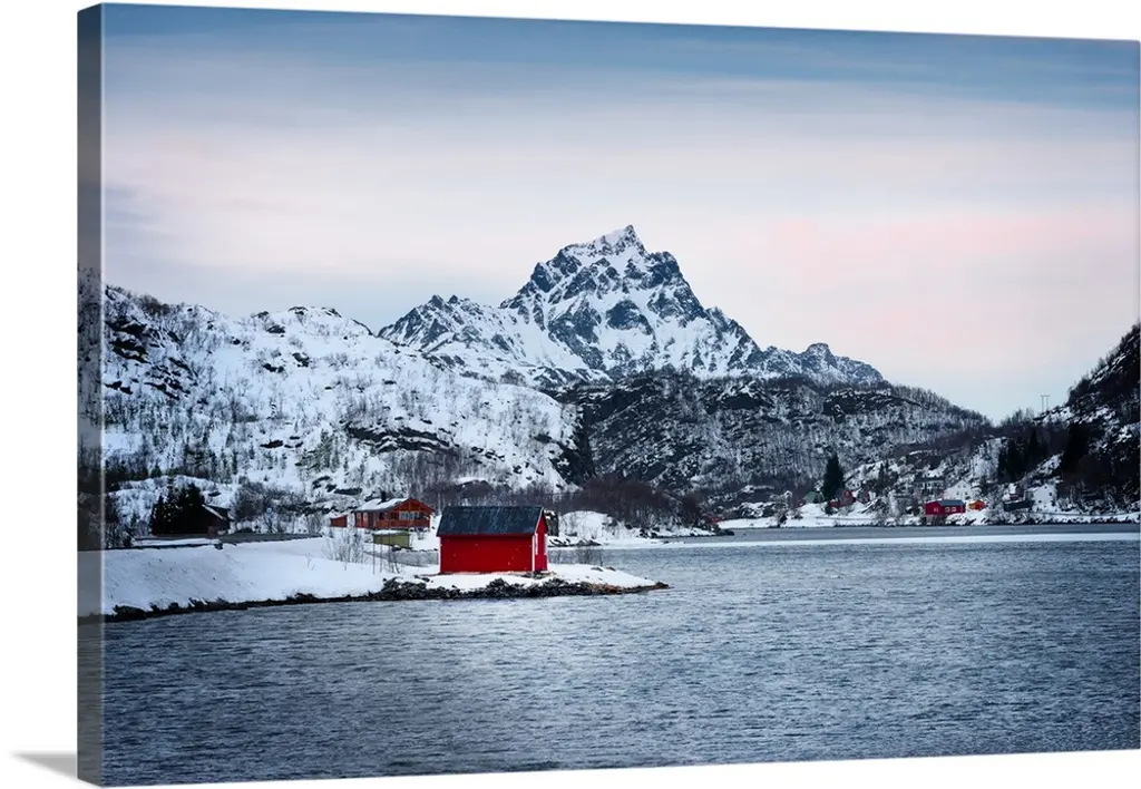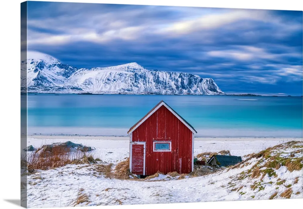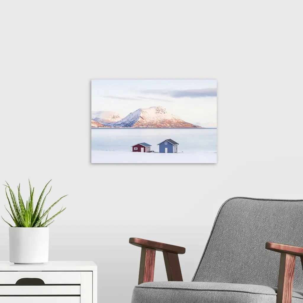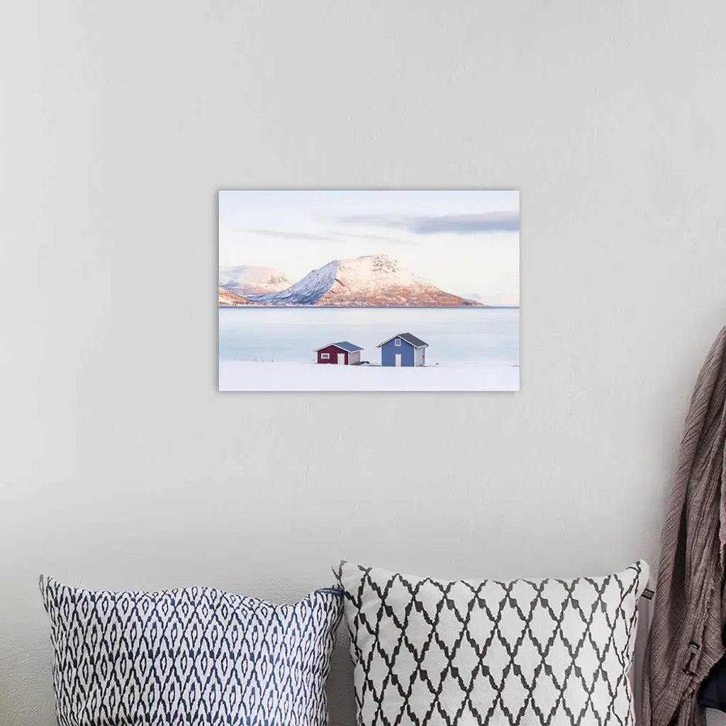 Lone Cabins On A Frozen Snowy Beach Along The Fjord At Dawn, Tromso, Norway wall art for home and office decor. Discover canvas art prints, photos, mural, big canvas art and framed wall art in GreatBigCanvas.com's varied collections.