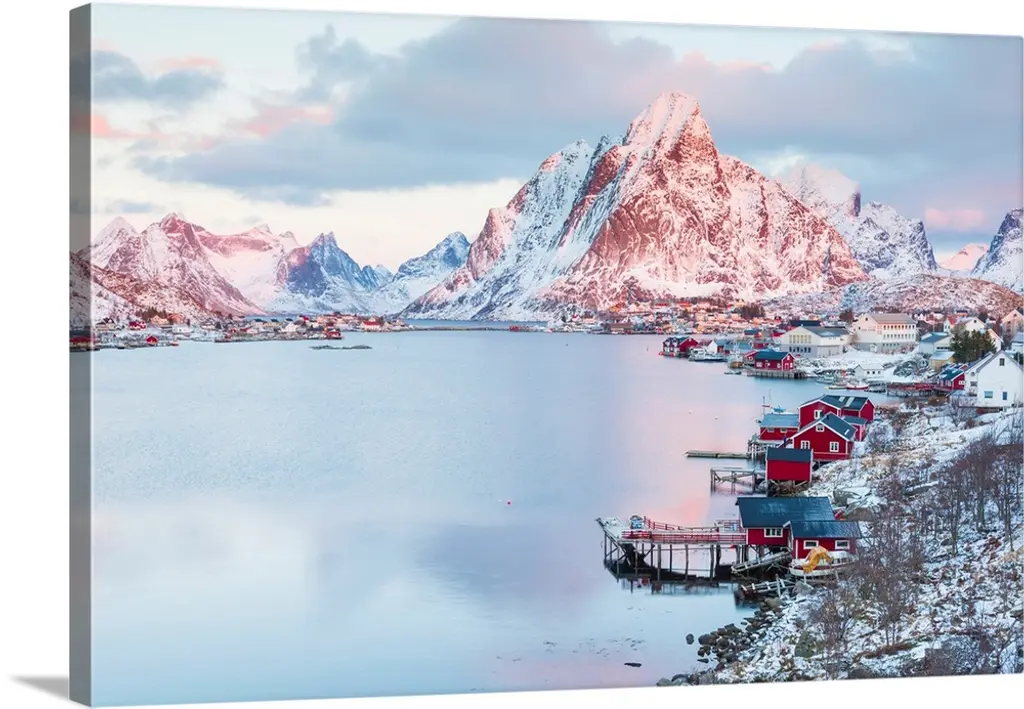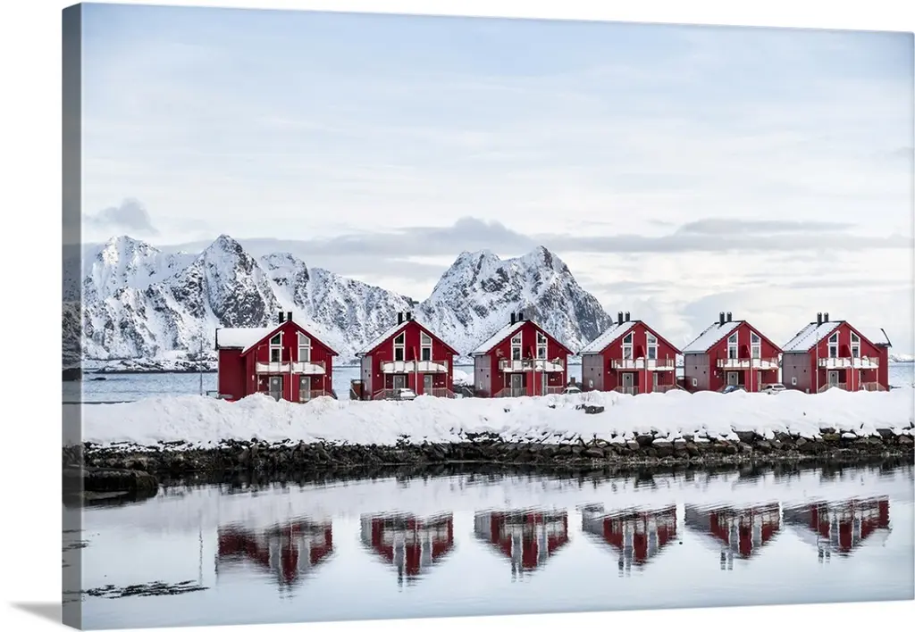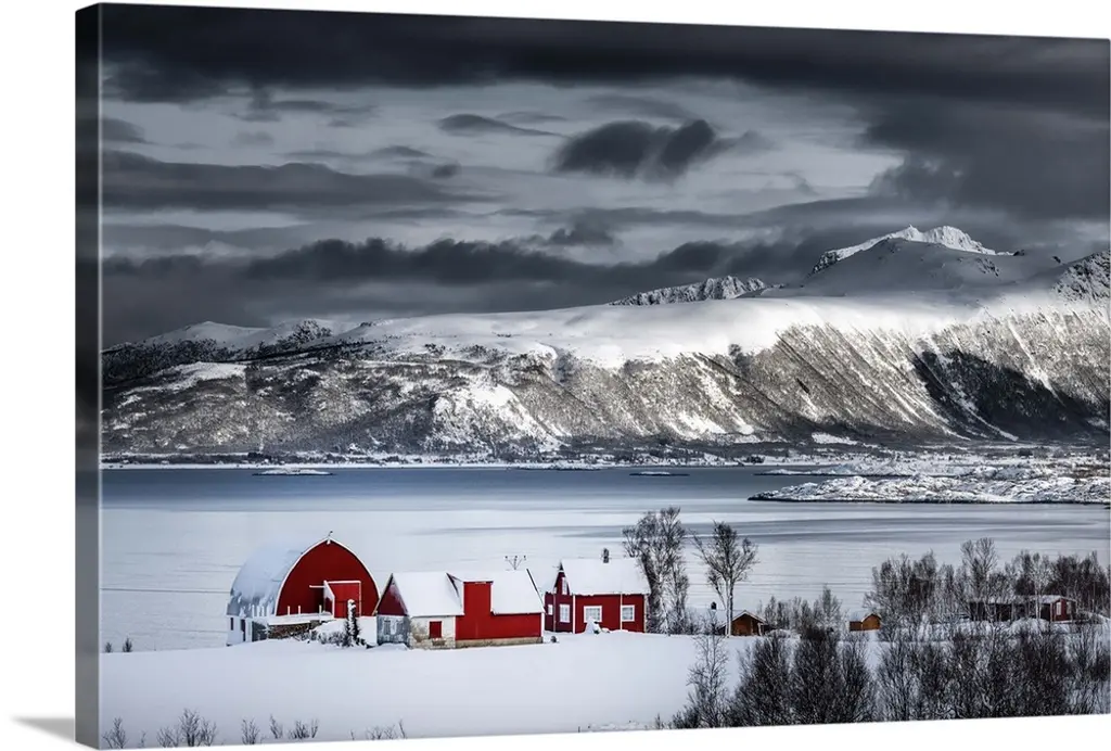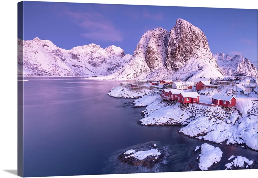 Lone Cabins On A Frozen Snowy Beach Along The Fjord At Dawn, Tromso, Norway wall art for home and office decor. Discover canvas art prints, photos, mural, big canvas art and framed wall art in GreatBigCanvas.com's varied collections.