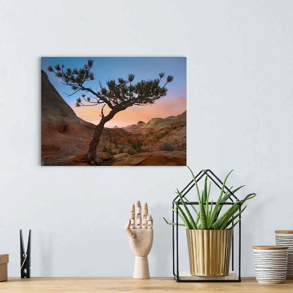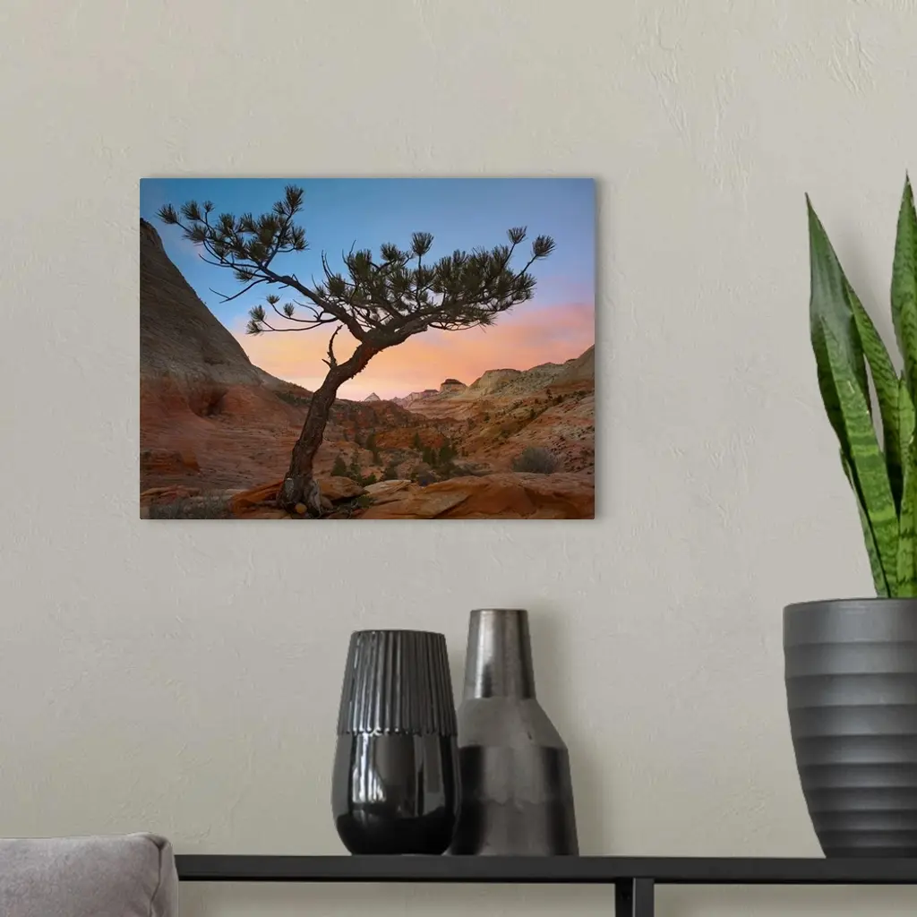Lone pine tree with East and West Temples in the background, Zion National Park, Utah wall art for home and office decor. Discover canvas art prints, photos, mural, big canvas art and framed wall art in GreatBigCanvas.com's varied collections.