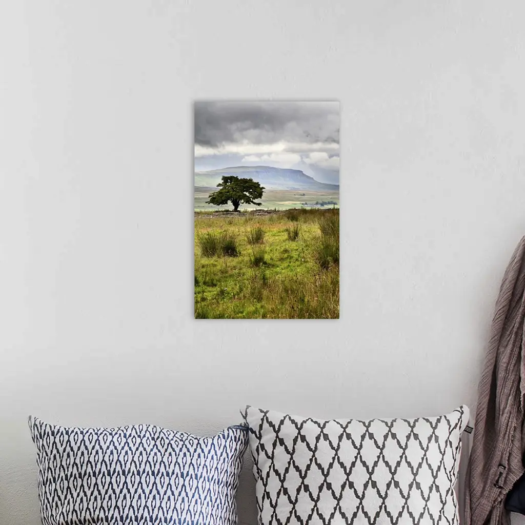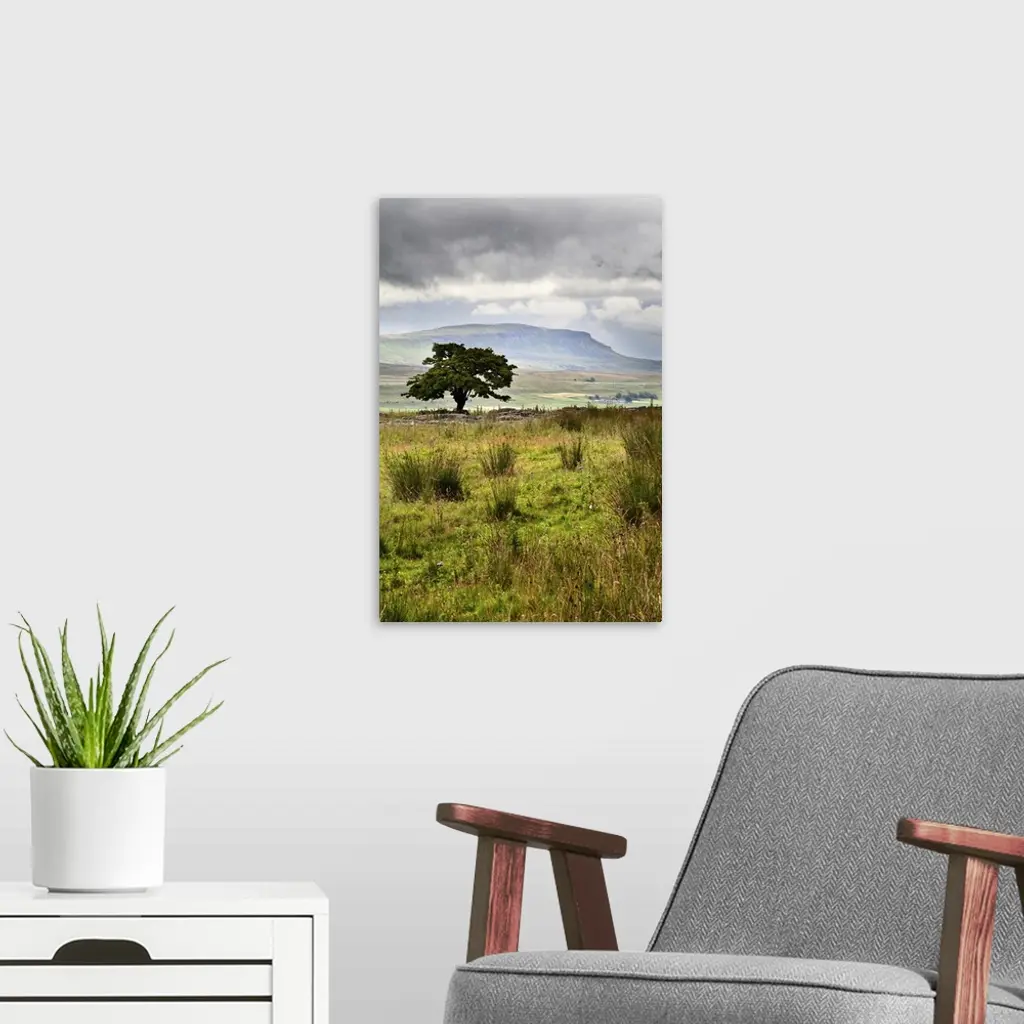 Lone Tree and Pen y Ghent from Gauber near Ribblehead, Yorkshire Dales, England.