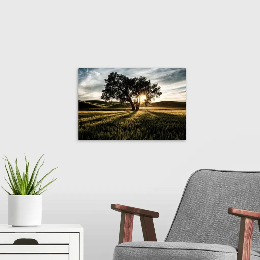 Lone Tree With Clouds At Sunset In The Palouse, Washington