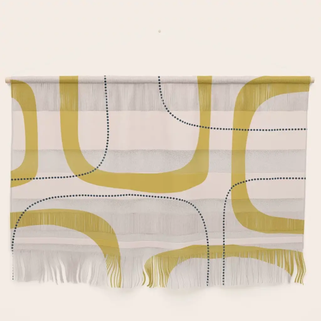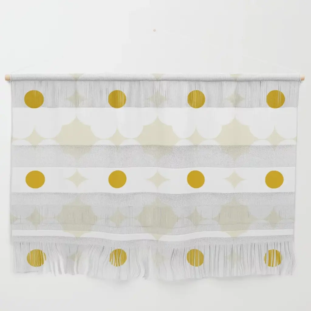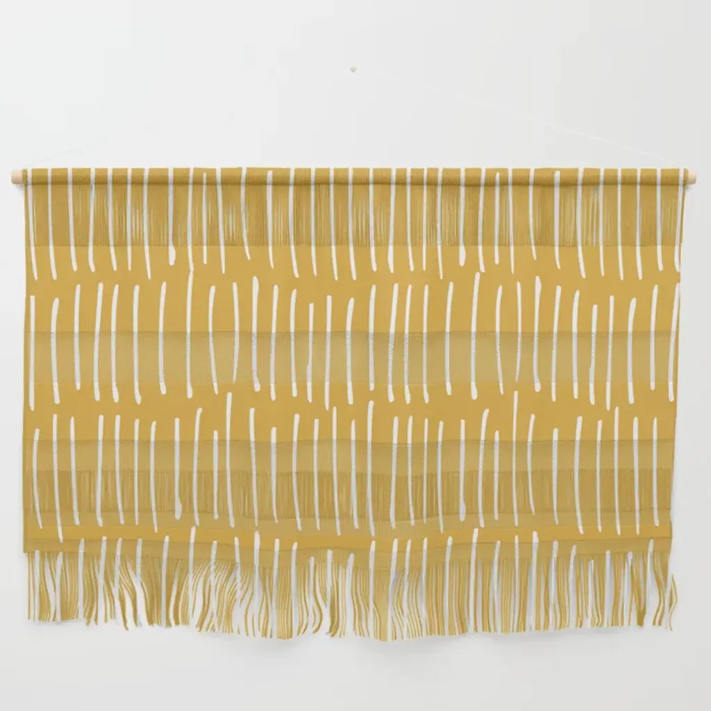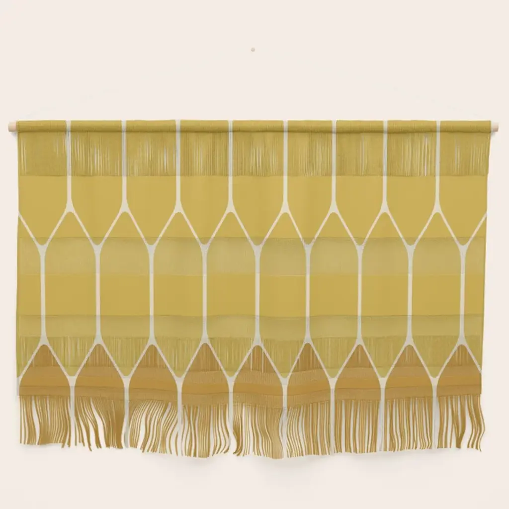Long Honeycomb - Minimalist Geometric Pattern In Cream And Dark Mustard Wall Hanging