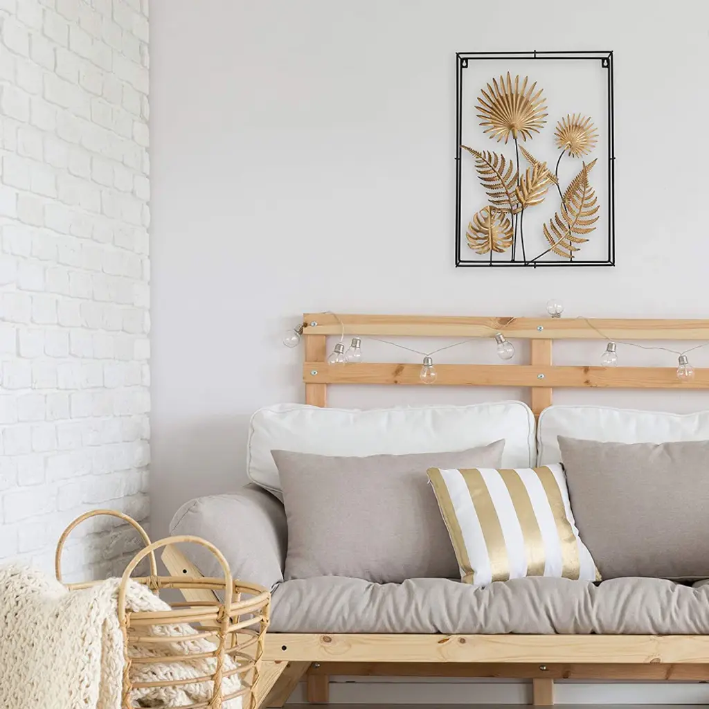 Long Rectangular Metal Green Leaves Pattern Wall Panel Frame Art Hcs7289