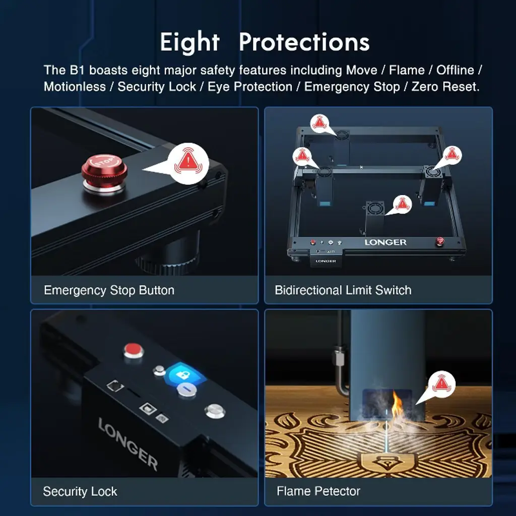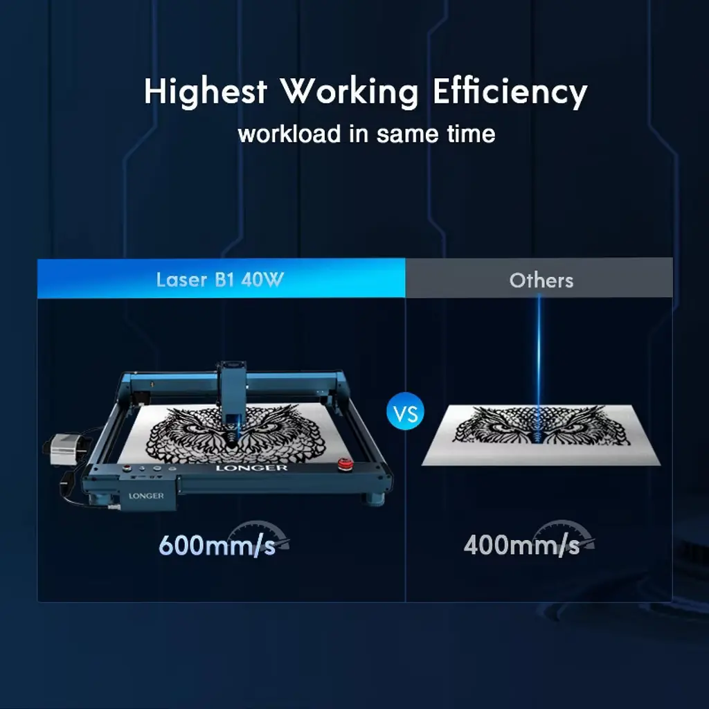 Longer Laser B1 40w Engraver Cutter, 600 Mm/s Speed, 17.72inx17.32in Area, Cuts 40 Mm Wood & 50 Mm Acrylic, Auto Air Assist