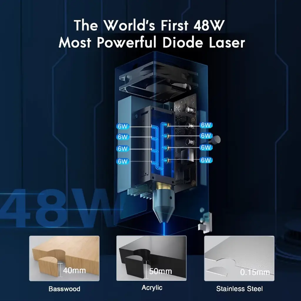 LONGER Laser B1 48W Laser Engraver Cutter, 600 mm/s Speed, 17.72inx17.32in Area, Cuts 40 mm Wood & 50 mm Acrylic, Auto Air Assist