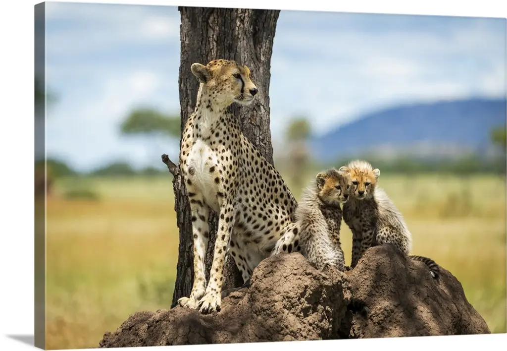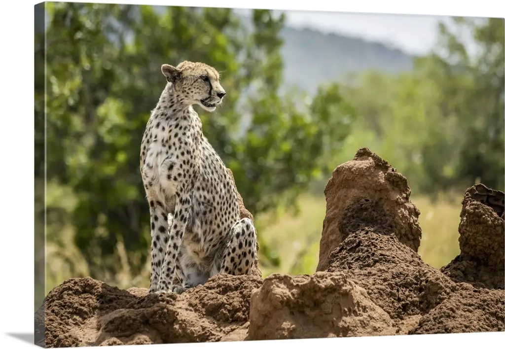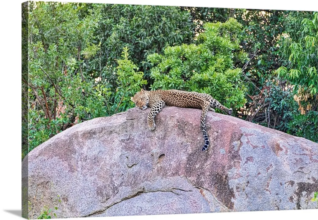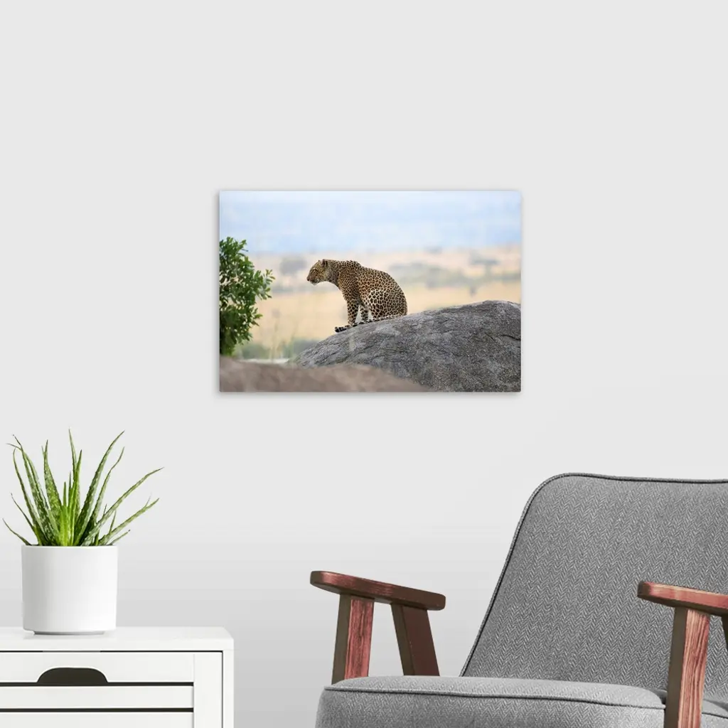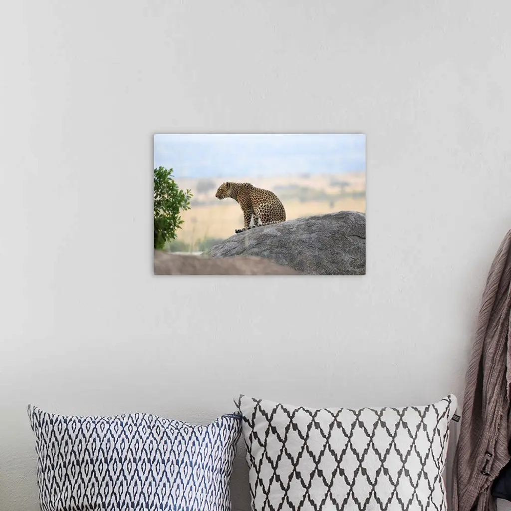 A leopard on a rock watches intently for a next meal. Tanzania, Africa.