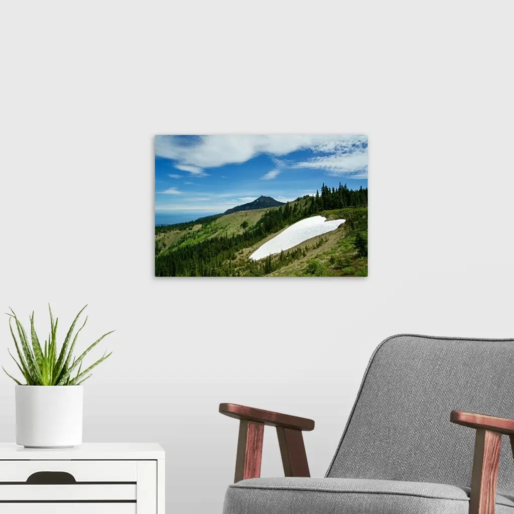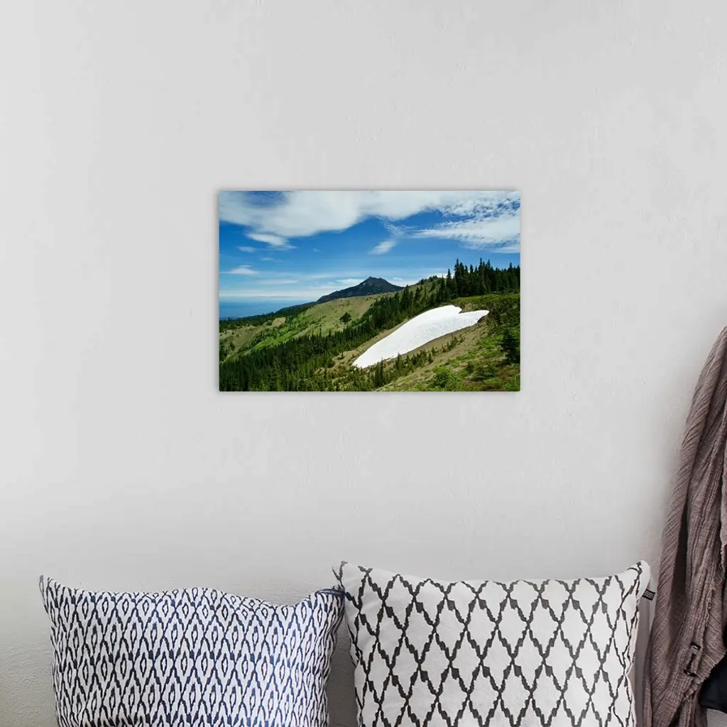 USA, Washington State, Olympic Peninsula, at the Hurrican Ridge Visitors Center: looking North toward Canada across the Juan de Fuca Strait