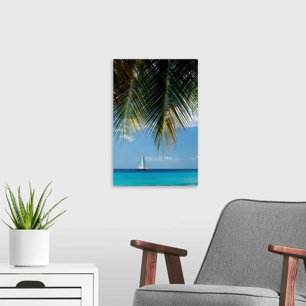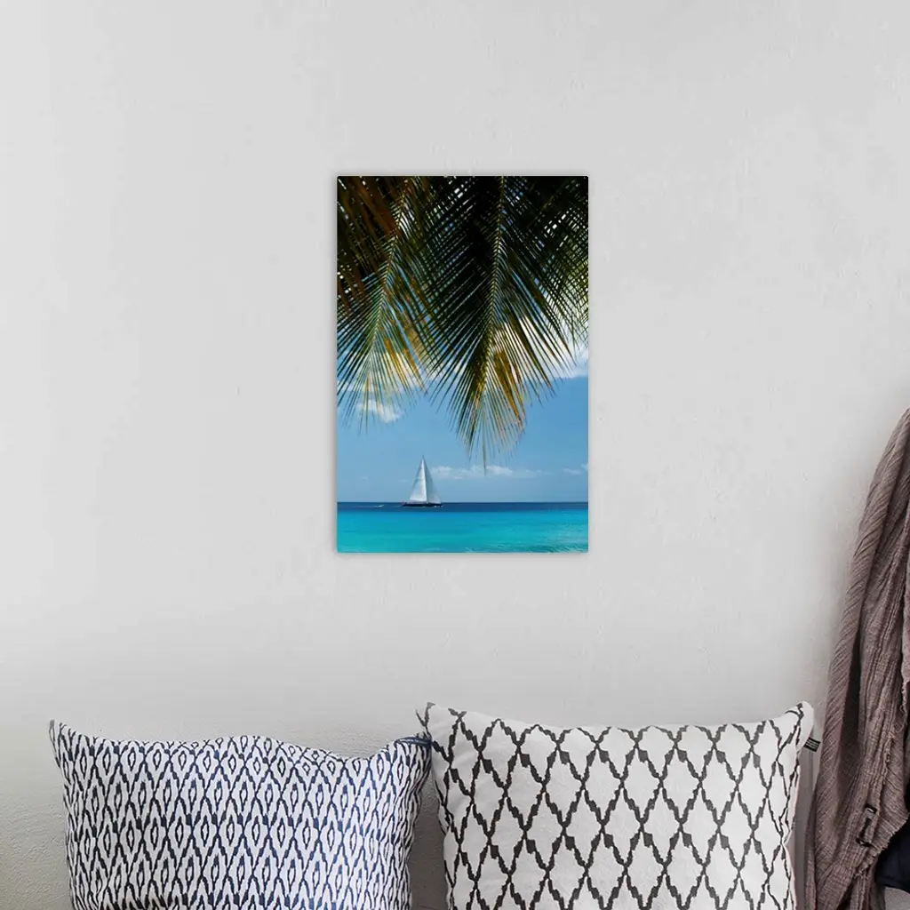 Looking Through Palm Trees To Large Yacht Off The West Coast Of Barbados wall art for home and office decor. Discover canvas art prints, photos, mural, big canvas art and framed wall art in GreatBigCanvas.com's varied collections.