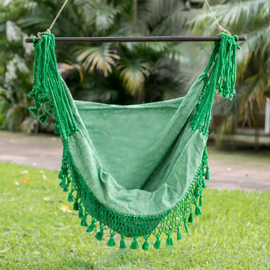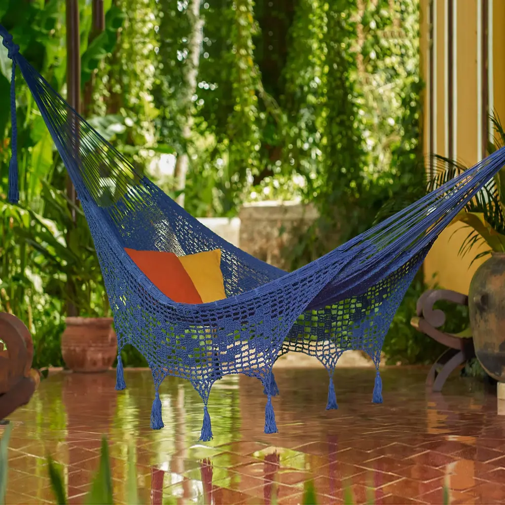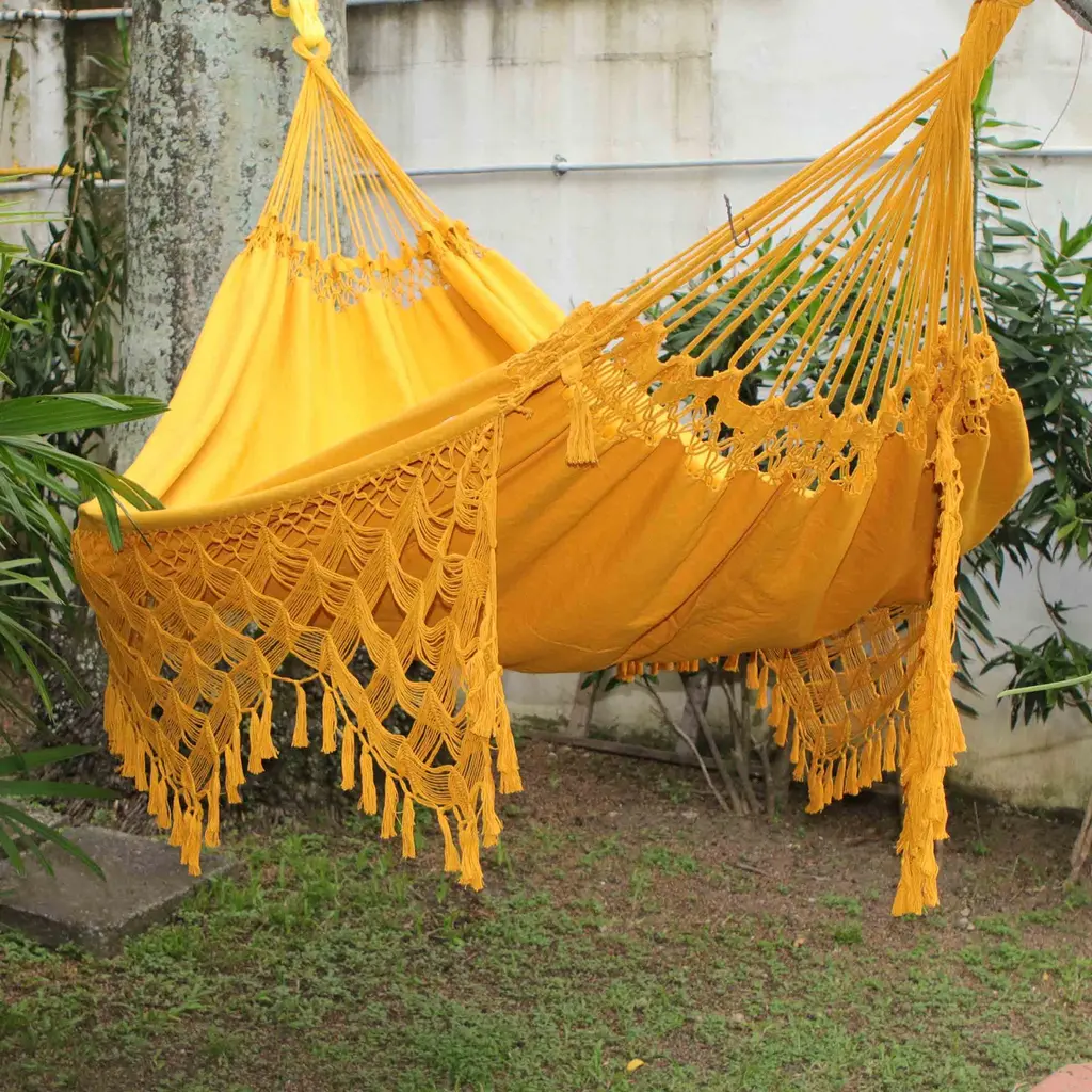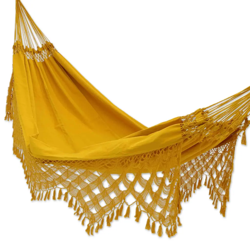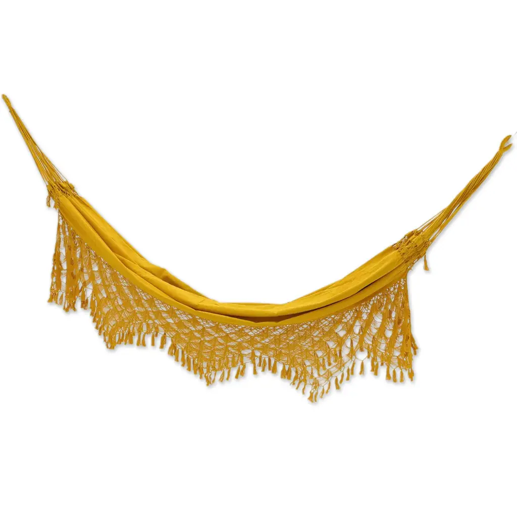 Loomed Honey Cotton Hammock With Crocheted Details (Single)- Honey Eden