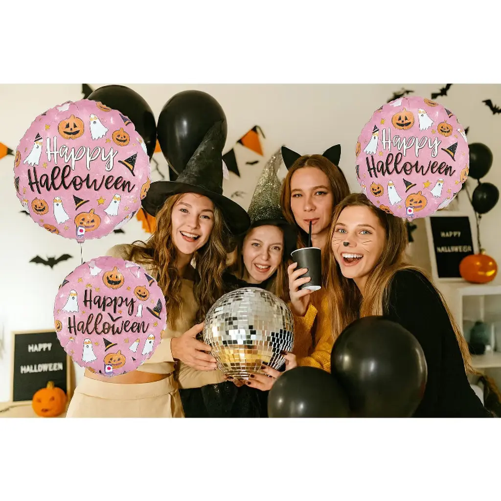 Bring shimmer and sparkle to your spooky celebrations with the LoonBalloon Halloween Disco Party Balloon Set. This fun party pack includes two holographic foil balloons in a standard size and four colorful latex balloons to complete the festive look. The holographic finish creates a glittery effect that catches the light beautifully, adding instant charm to any Halloween gathering. Perfect for decorating haunted houses, costume parties, or seasonal events, these balloons make a dazzling statement and transform any space into a lively party scene. Easy to inflate and simple to arrange, this set is a must-have for anyone looking to create memorable Halloween moments filled with glow and shine.