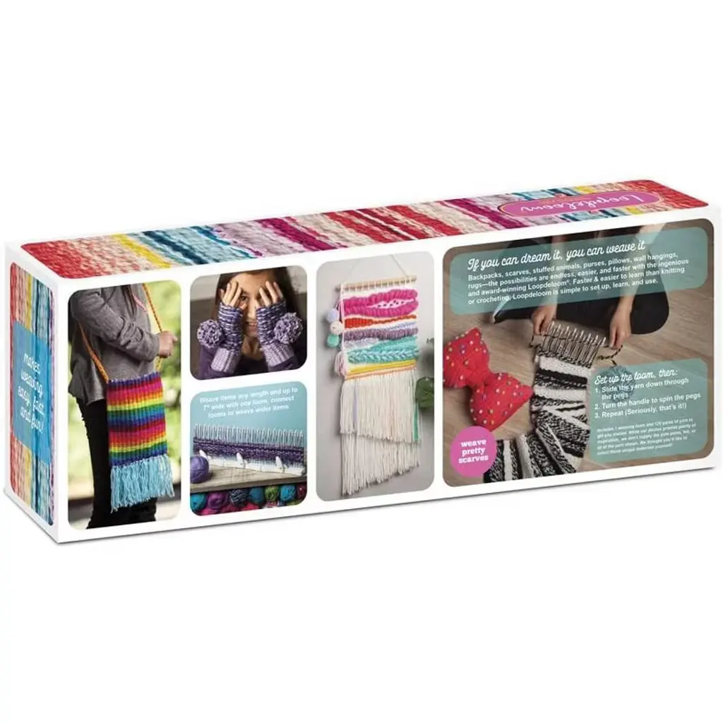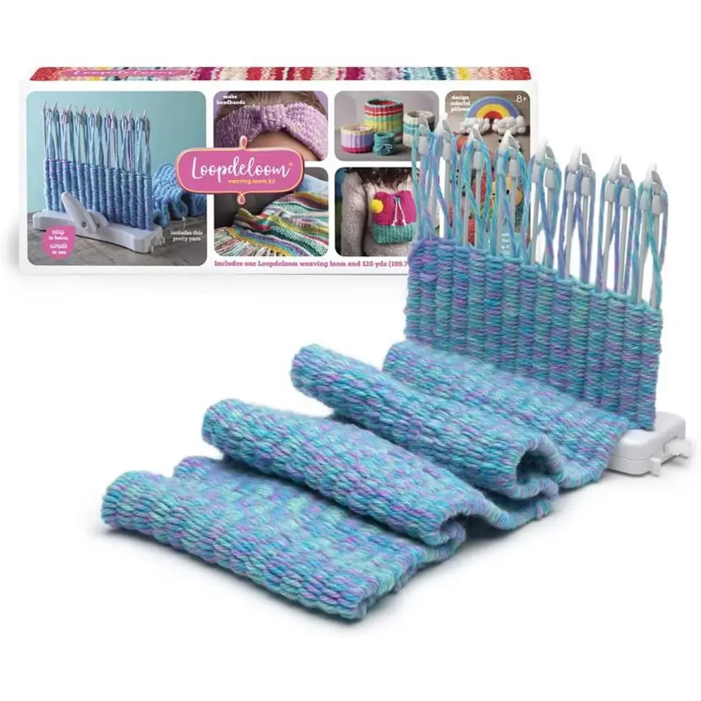Explore the exciting world of weaving with the Loopdeloom Weaving Loom Craft Kit. Ideal for children ages 8 and up, this award-winning kit makes weaving fast and fun with its unique spinning peg design. The kit includes a loom and 120 yards of yarn to help beginners create scarves, purses, and more. This craft promotes fine motor skills, creativity, and concentration, while allowing for the creation of items of any length and up to 7 inches wide.