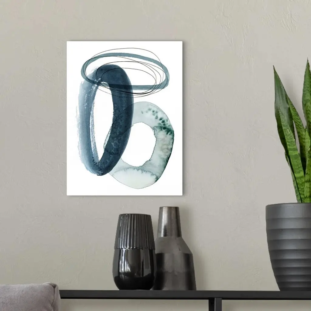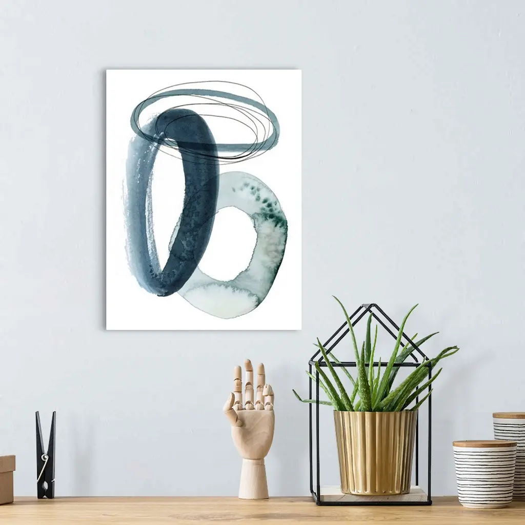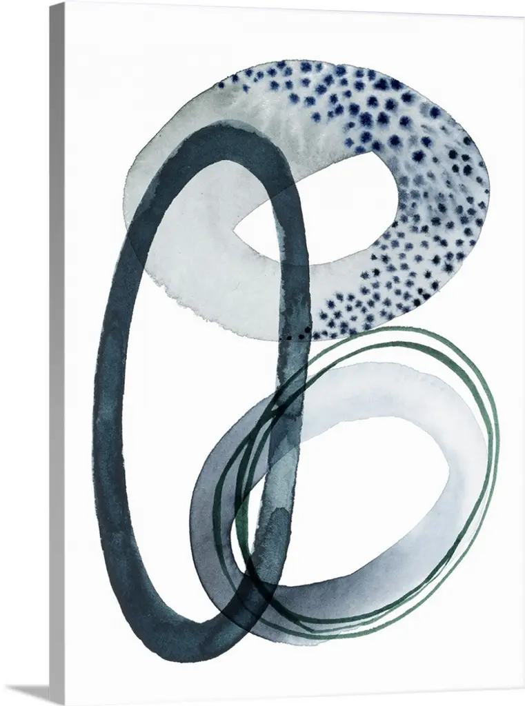 A series of interlocking watercolor rings in varying thickness and textures overlap a white background.