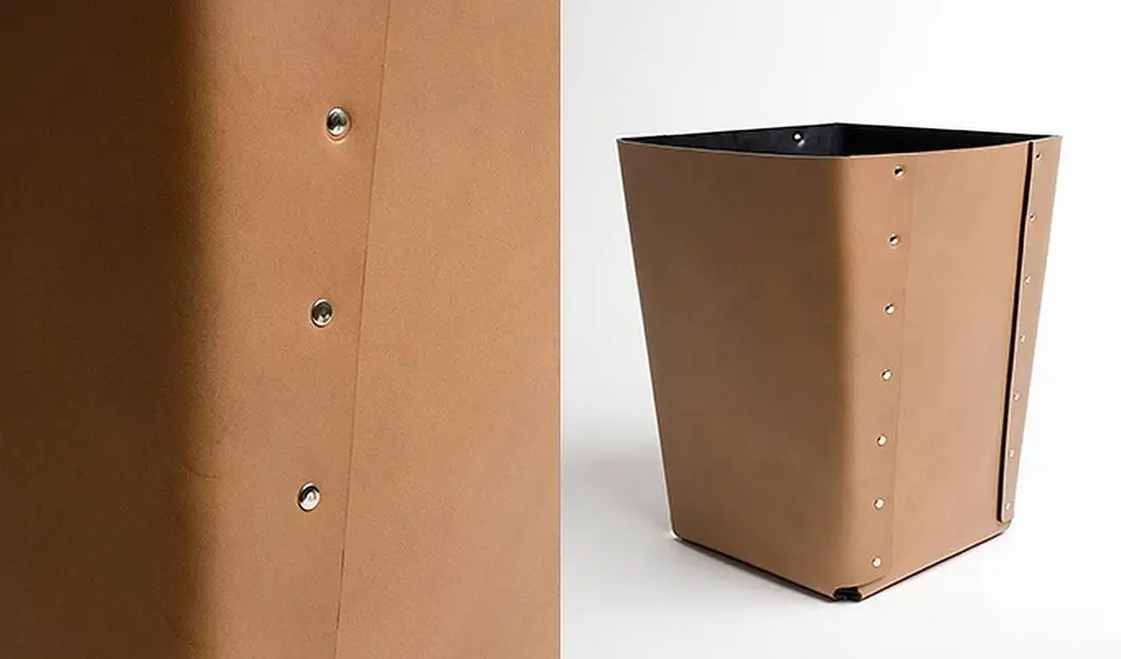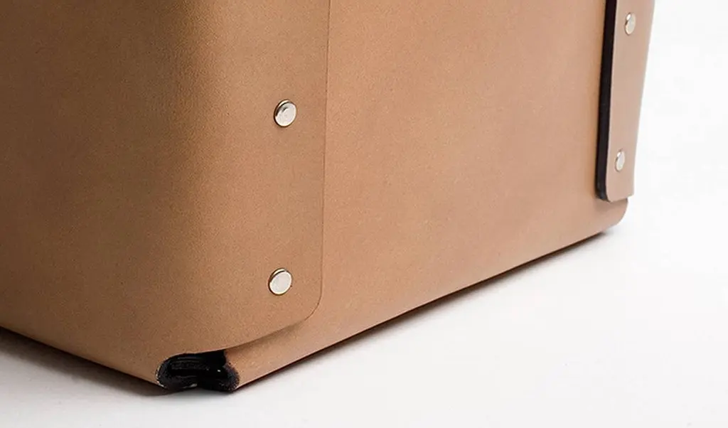 "Lorenzo" is a riveted leather pencil holder, designed by Claude Bouchard and manufactured by Oscar Maschera. Genuine Italian leather vegetable tanned. Colors combination to be chosen from the available range: tan, sienna, orange, red, red-purple, dark brown, khaki, blue, black.DIMENSIONS:D. 3.9", W. 3.9", H. 4.9"The leather is doubled to obtain greater thickness and a color contrast between inner and outer surfaces; it's then folded and held together by metal rivets: the object has taken shape. Leather, robust and soft, which maturates over time like wood, wine, brandy and cheese, is a material suitable for a living relationship with people and things it has to do with: it absorbs their scent and gives its own. It protects, gathers and changes shape, as it retains something of the life it once had.Past experiences in working with leather, with objects of common use transformed into their own form by the material of which they were made (baskets, boxes, trays, writing-desk items, small pieces of furniture, in addition to bags and cases, of course) have led Oscar Maschera to today’s production which has exceeded even the limits of explicit reality to get the pure form of the objects, reaching beyond the risky limit of mere functionality.CLAUDE BOUCHARD, interior architect and designer by training, is well known for his pieces of design in ceramics, porcelain, glass, metal and wood for firms such as Hermès, Puiforcat, Porcelaines Bernardaud, Faïenceries de Gien and the Musée des Arts décoratifs de Paris in France, Triangolo in Italy, Anthologie Quartett in Germany and Vista Alegre in Portugal.He has been artistic director of Puiforcat, the silversmith subsidiary of the Hermès group (2007 – 2009). Claude Bouchard’s work is focused on the physical, emotional and esthetic relationship between the object or space created and people who use or experience it. He has always questioned the simplicistic principle of “purity” and “functionalism”.During all his work Bouchard has been trying to bring a profoundly contemporary form of expression to traditional techniques and materials and thus to help the conservation and renewal of those endangered techniques. Claude Bouchard lectures both for the architecture Department of Columbia University and at the Camondo School of design and interior architecture.Claude Bouchard’s work has been shown at the Galleria Blanchaert in Milan, at the Biennale di Faenza, at Max Alto and the Square de Vergennes Gallery in Paris, at the Biennale de St. Etienne, and at the craft in several retrospective exhibits in France, Belgium and Japan and several of his works are now in museum collections (Musée des Arts décoratifs Paris, Musée des Arts décoratifs et des Textiles de Lyon, etc).