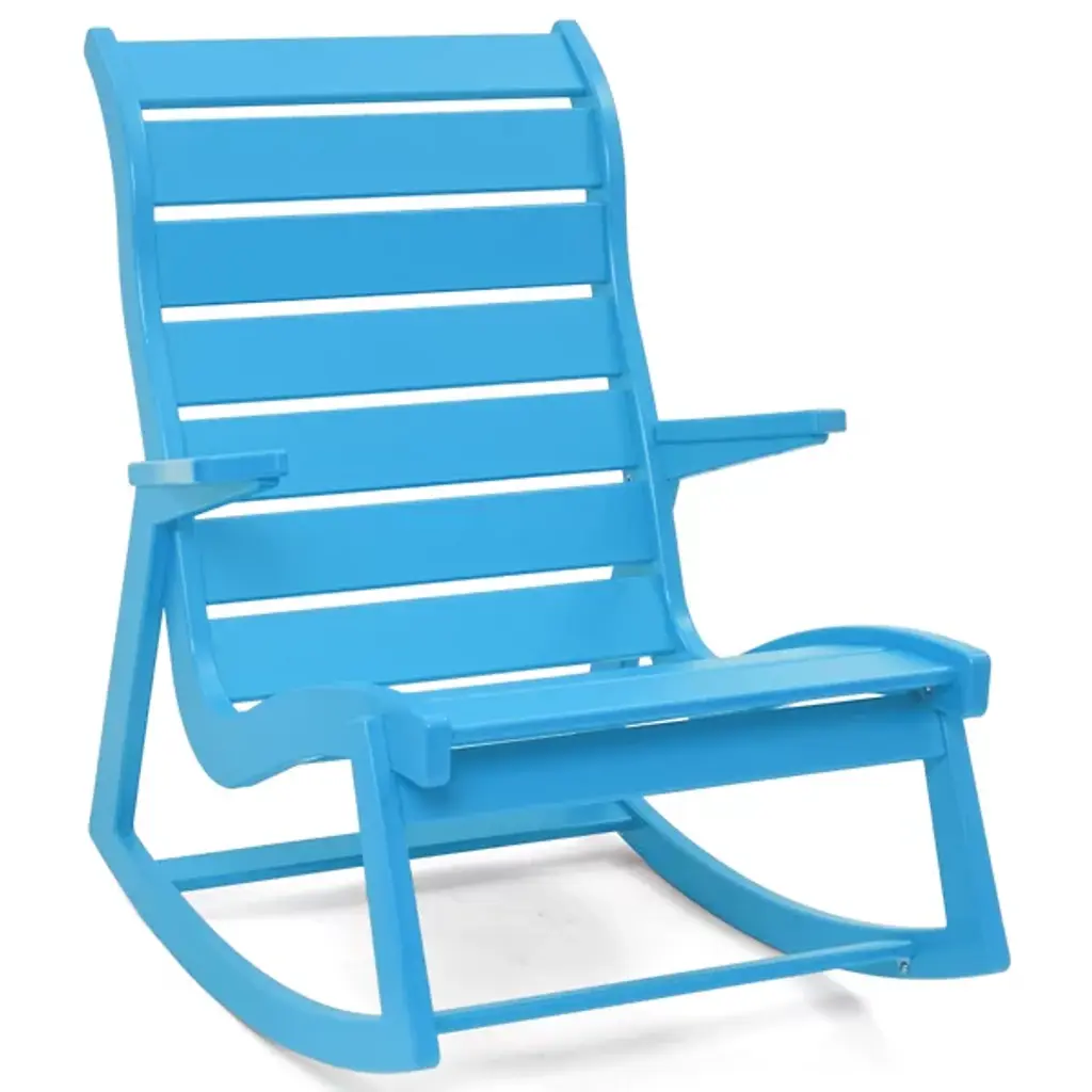 Get comfortable and get rocking with our Loreto outdoor rocking chair. Made of a proprietary blend of sustainable materials including landfill- and ocean-bound plastic that resembles wood, the durable chair features a slatted back and seat that tilts at a comfortable recline. Rockers and armrest combine in a continuous flow for a contemporary twist on a porch classic.