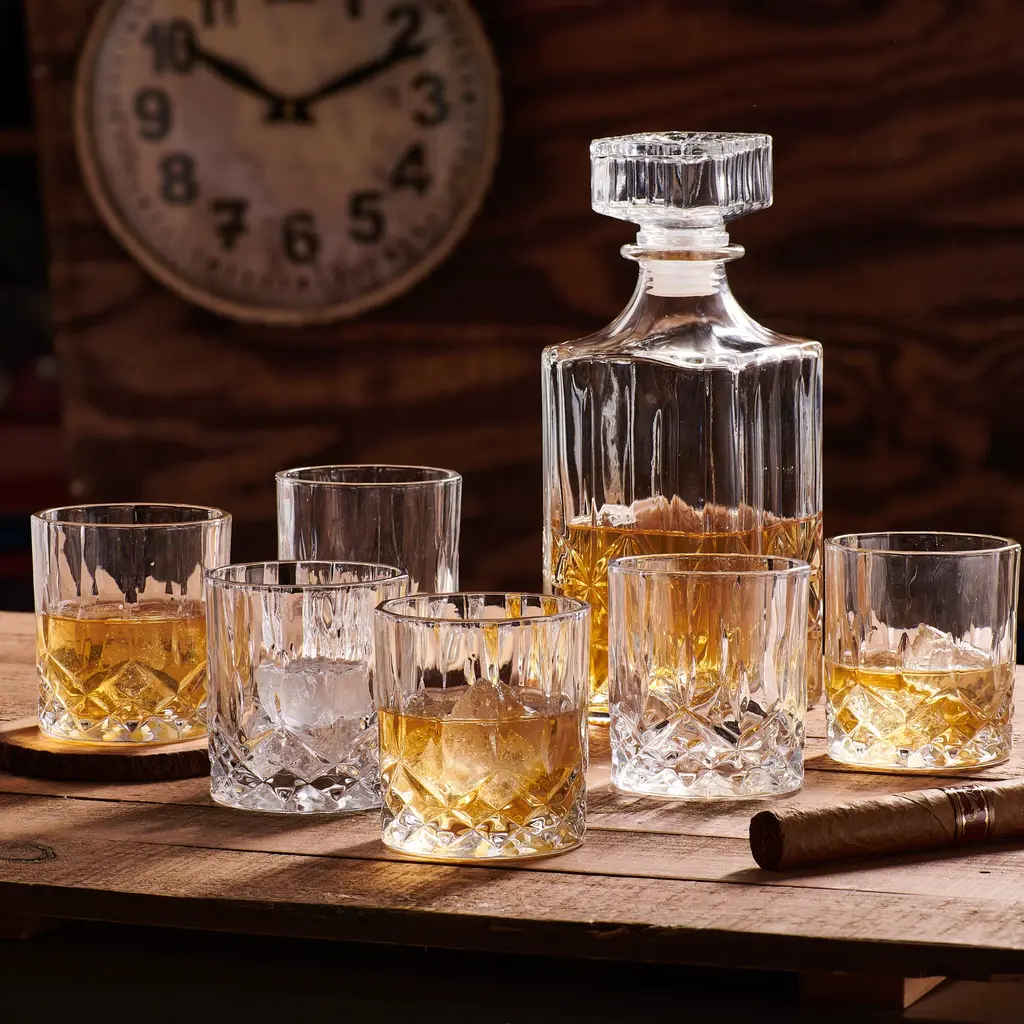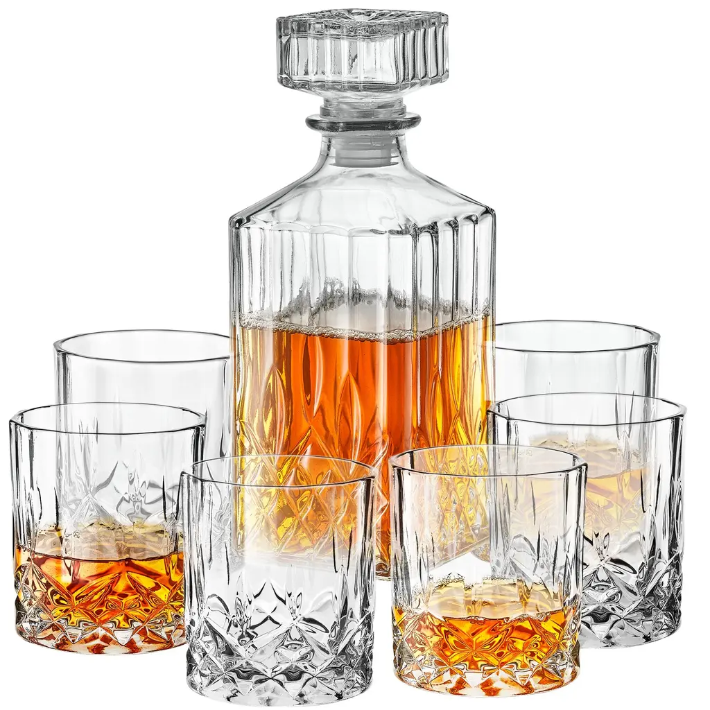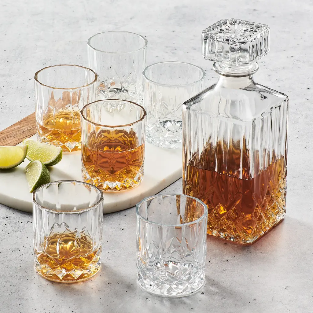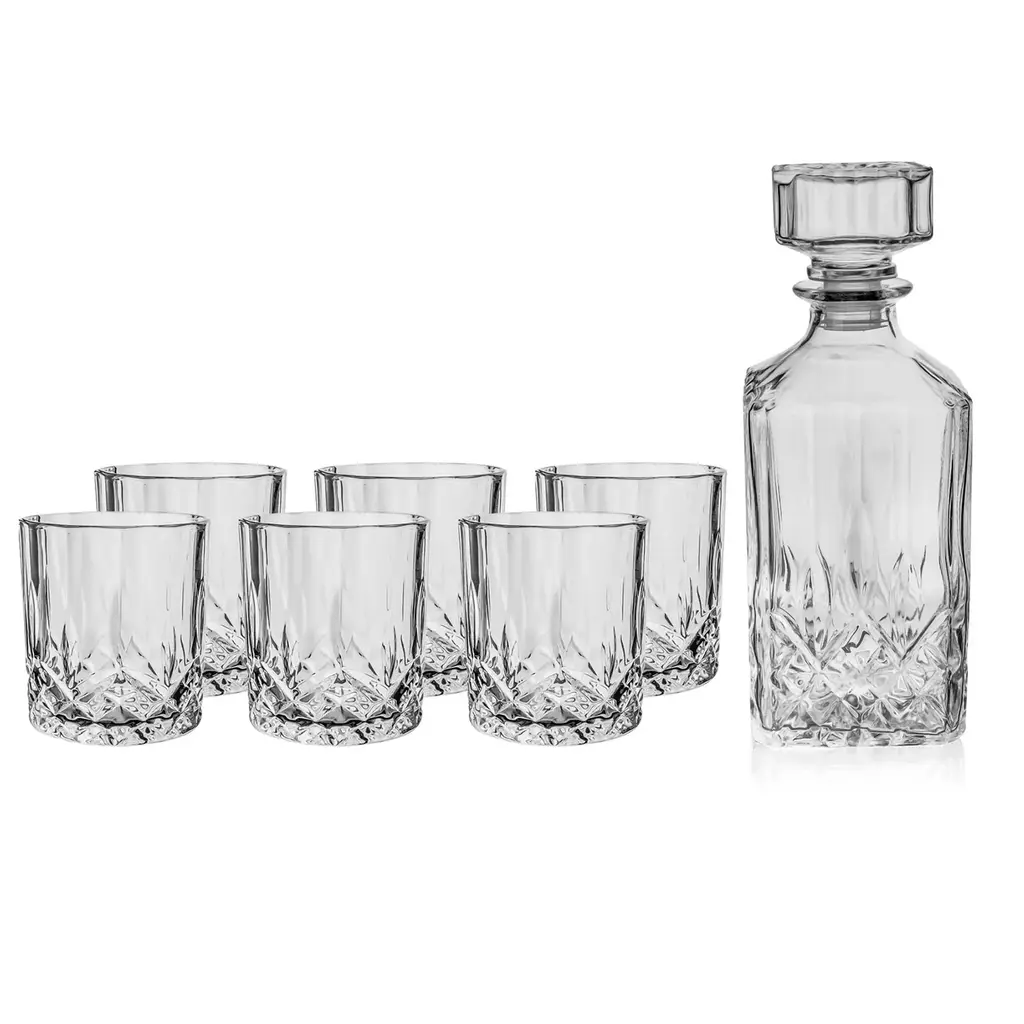 Loretto Whiskey Set - Set Of 7 - 11"w X 21"d X 10"h - 11"w X 21"d X 10"h - Clear - 7 Piece