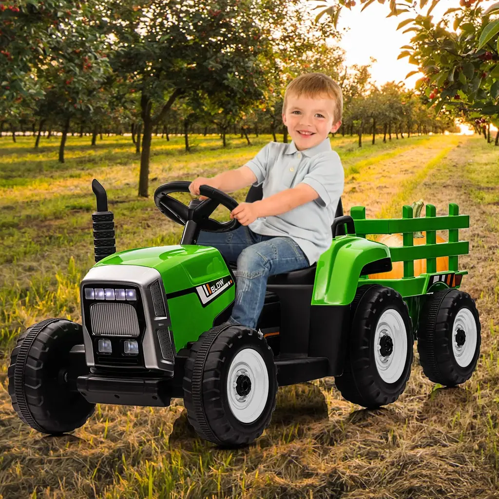 Lorise 35w Battery Powered Electric Tractor With Trailer For Kids 3-6 Years - 54"l X 20"w X 21"h - Green