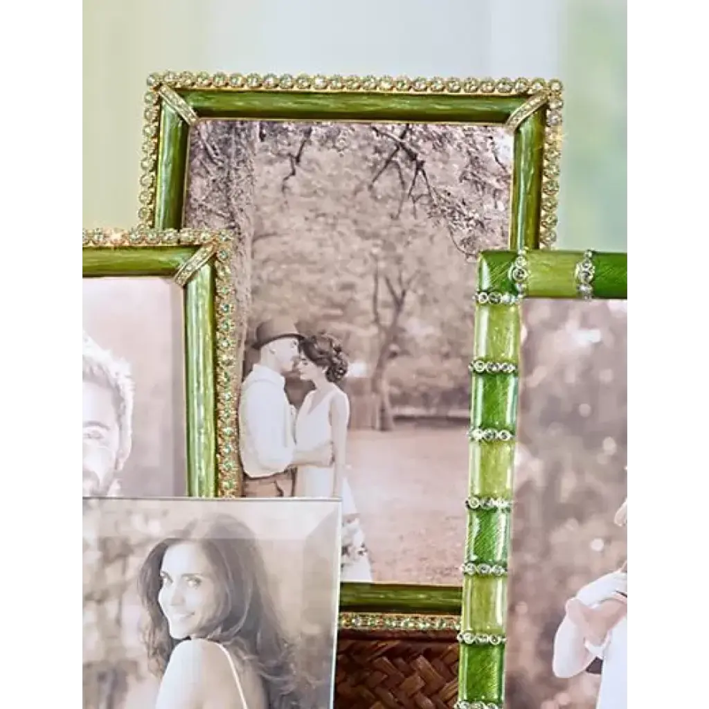 Simplicity, elegance, and versatility are the cornerstones of the Classics collection. The Lorraine Stone Edge 4" x 6" Frame makes your cherished memories the star of the show, surrounding them with beautiful—yet understated—leaf-hued hand enameling and hand-set Swarovski® crystals.