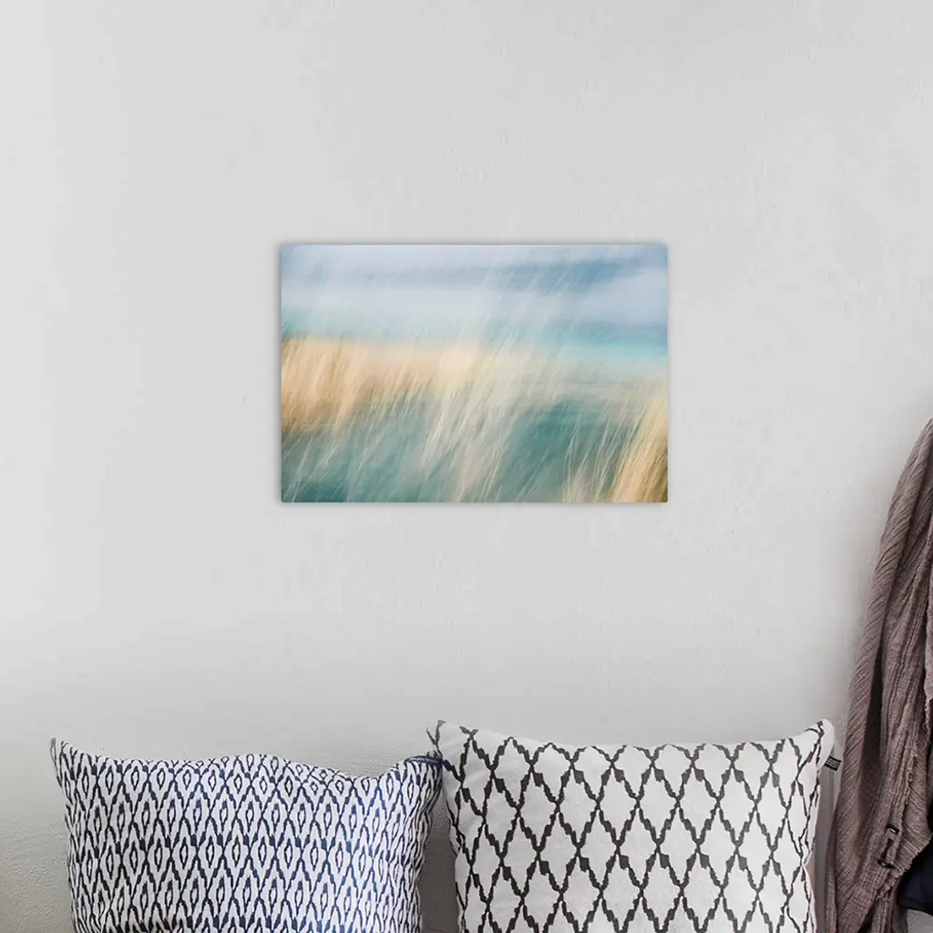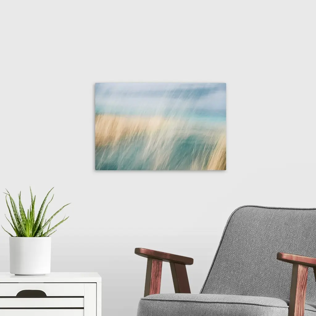 Abstract of wild beach grass in sand dunes blowing in the wind.