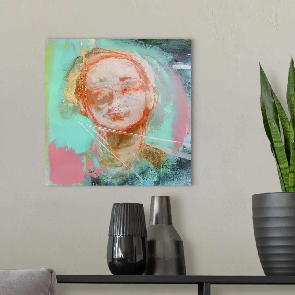 Lost in thought 4, 2020. (Originally acrylics, pastels and gold leaf on paper.)