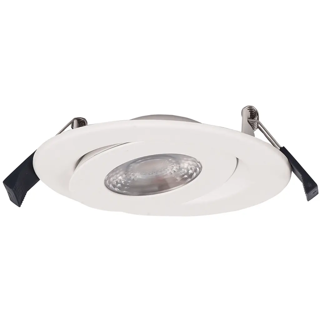 The wafer-thin Lotos LED Recessed Kit with remote driver combines high quality light output and efficiency while eliminating the need for a large housing. This innovative design can be installed easily as a remodel or new construction with an optional frame-in kit sold separately for pre-wiring. Lotos is available in a downlight version for general ambient lighting and an adjustable version with a gimbal that pivots 360 degrees on a hinge, perfect for slope ceilings, general lighting, accenting lighting, and wall washing. The integrated high output and energy efficient Lotos LED module maintains at least 70% light output for 50,000 hours. The Lotos is ideal for shallow ceiling applications with as little as 3-inch plenum clearance. Lotos LED is offered in round and square with 2in, 4in, and 6in aperture options. Use part R2ESAR-2 or R2ESAR-3 for the multi-light option with 2 and 3 light configurations. Now with a fire rated version, -FWT.