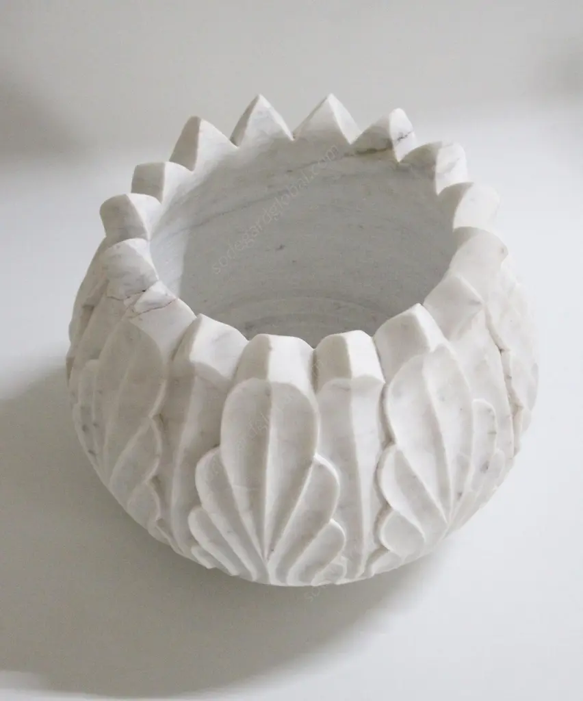 Available Sizes:25” x 25” x 16” HHand carved out of a single block of marble, perfect for outdoors.Customization is our specialty. Please do not hesitate to get in touch with us for any queries regarding size, material or design customization.