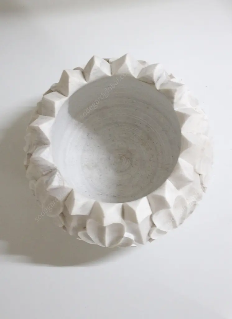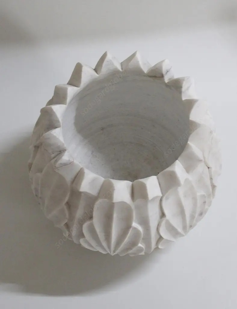 Lotus Pot In White Marble Handcrafted In India By Stephanie Odegard