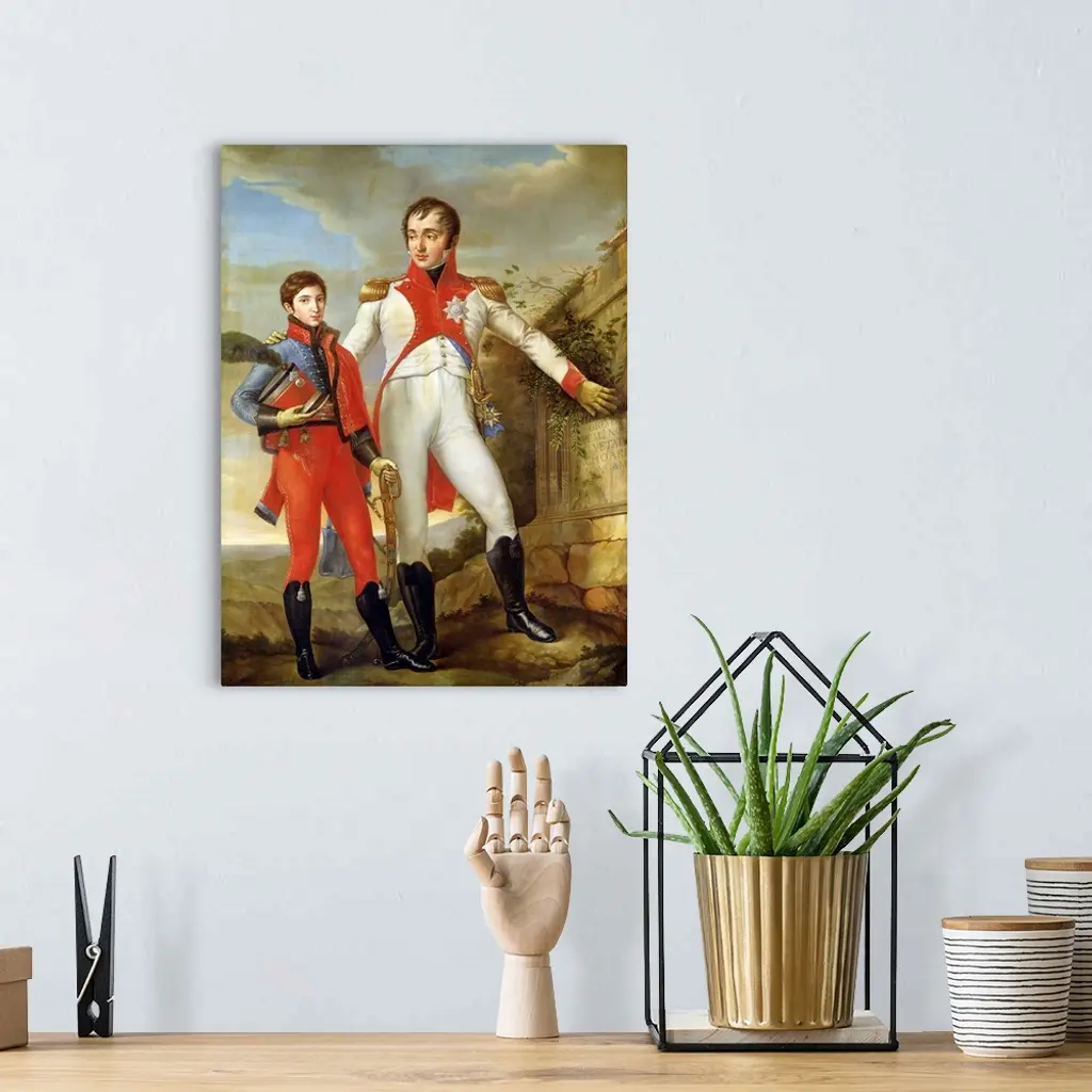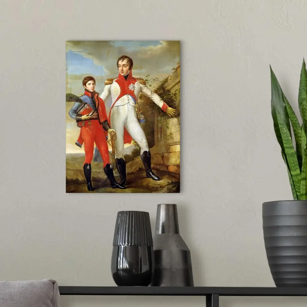 XIR70355 Louis Bonaparte (1778-1846) King of Holland and Louis Napoleon (1804-31) Crown Prince of Holland, c.1806 (oil on canvas) by Wicar, Jean Baptiste Joseph (1762-1834) (after); 200x150 cm; Chateau de Versailles, France; (add. info.: roi et prince royal de Hollande; Louis Bonaparte was the third brother of Napoleon Bonaparte (1769-1821)); French, out of copyright