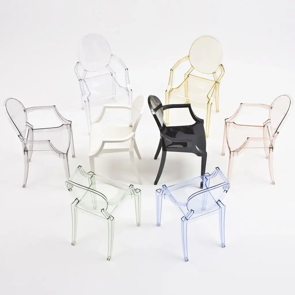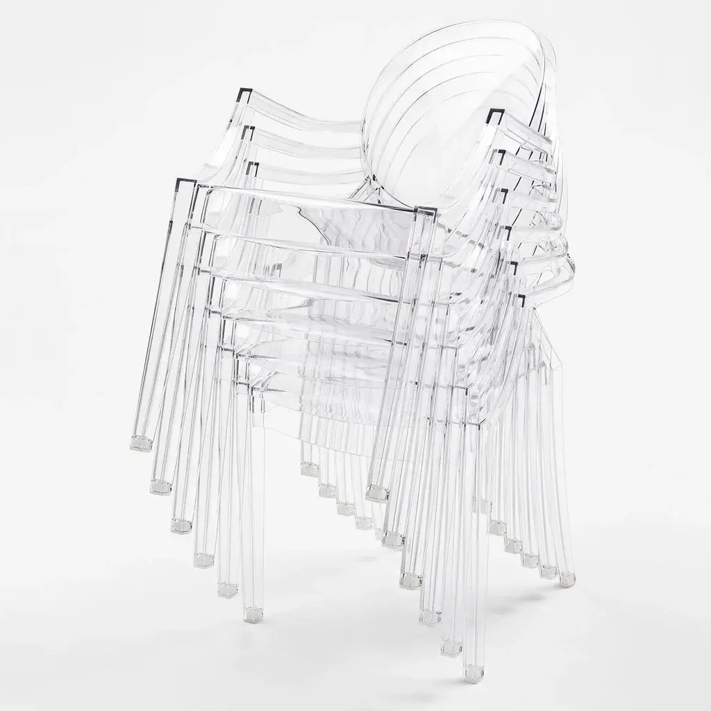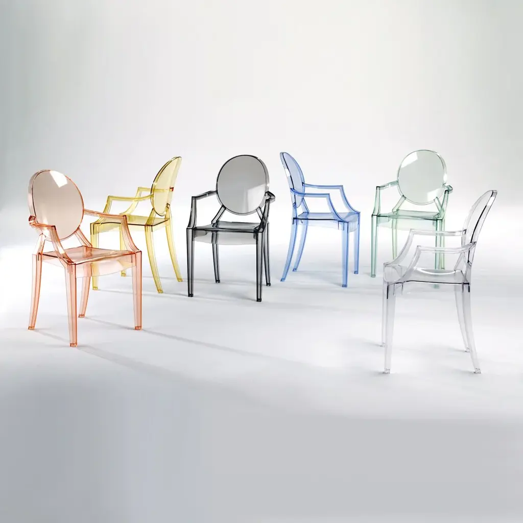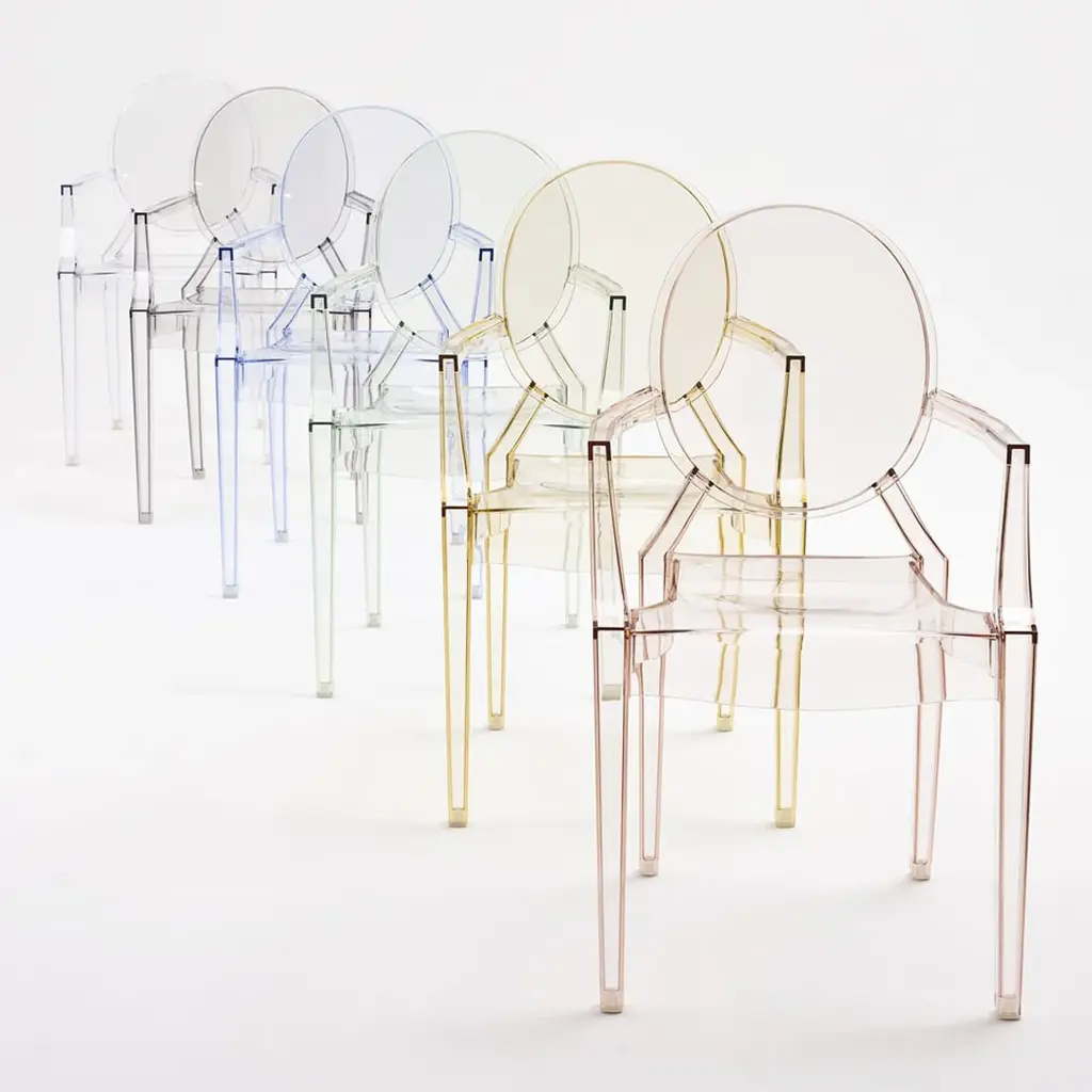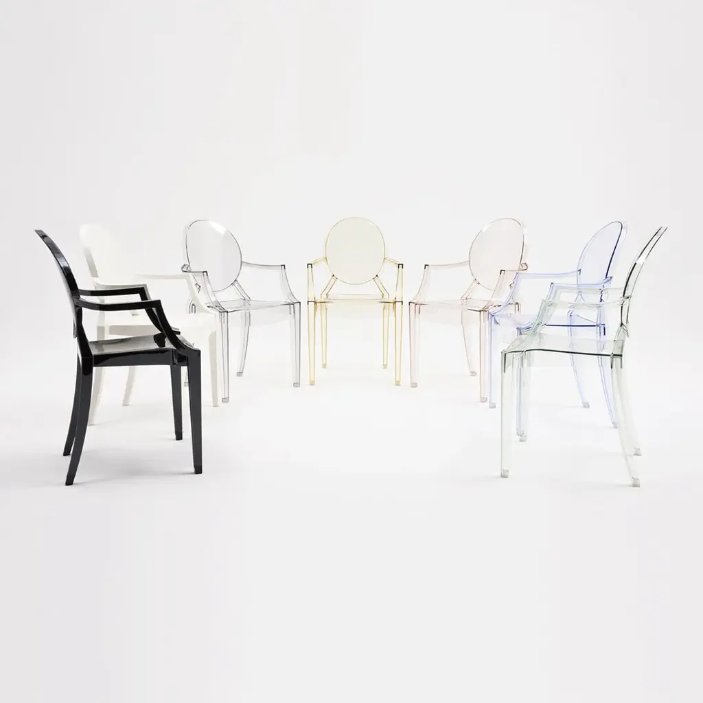 We like a touch of elegance. We like a touch of irony. The Kartell Louis Ghost chair is the most daring example of baroque made to excite, dazzle and captivate...all out of a single mold. Yes, the Louis Ghost chair looks like it is made of crystal but in actuality it is durable, scratch and weather resistant. It is ok if you want to live like Louis XV, we think of you as king anyway.