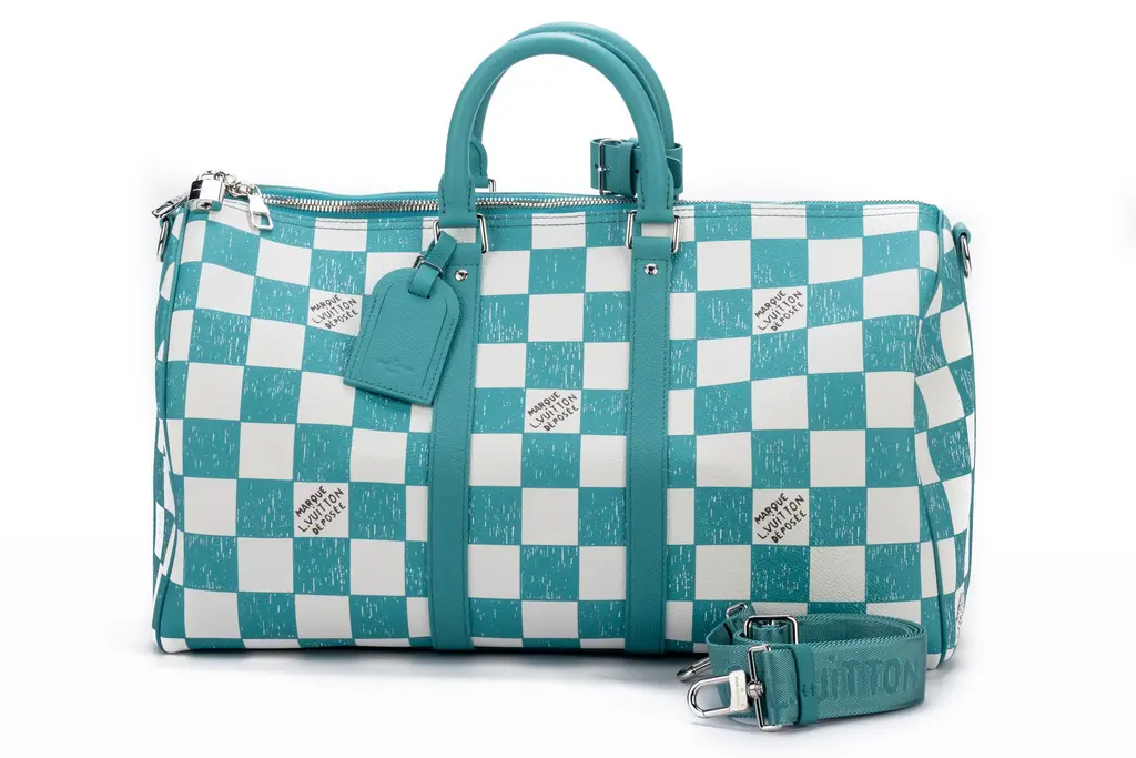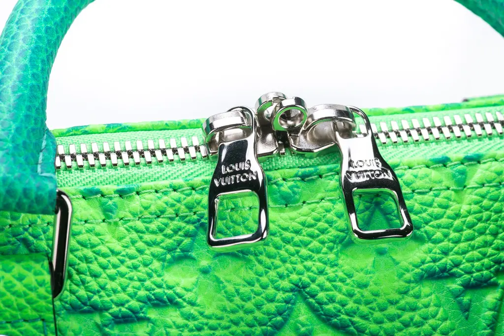 The Louis Vuitton Keepall 50 Bandouliere is made from bull calfskin with a soft multicolored green. This bag is from the Virgil Abloh Illusion leather collection. Soft side and cabin-friendly, the Keepall 50 bag merits it’s name: the unexpectedly spacious interior can hold everything needed for a weekend gateway. This is the new and the last collection of the late designer Virgil Abloh.