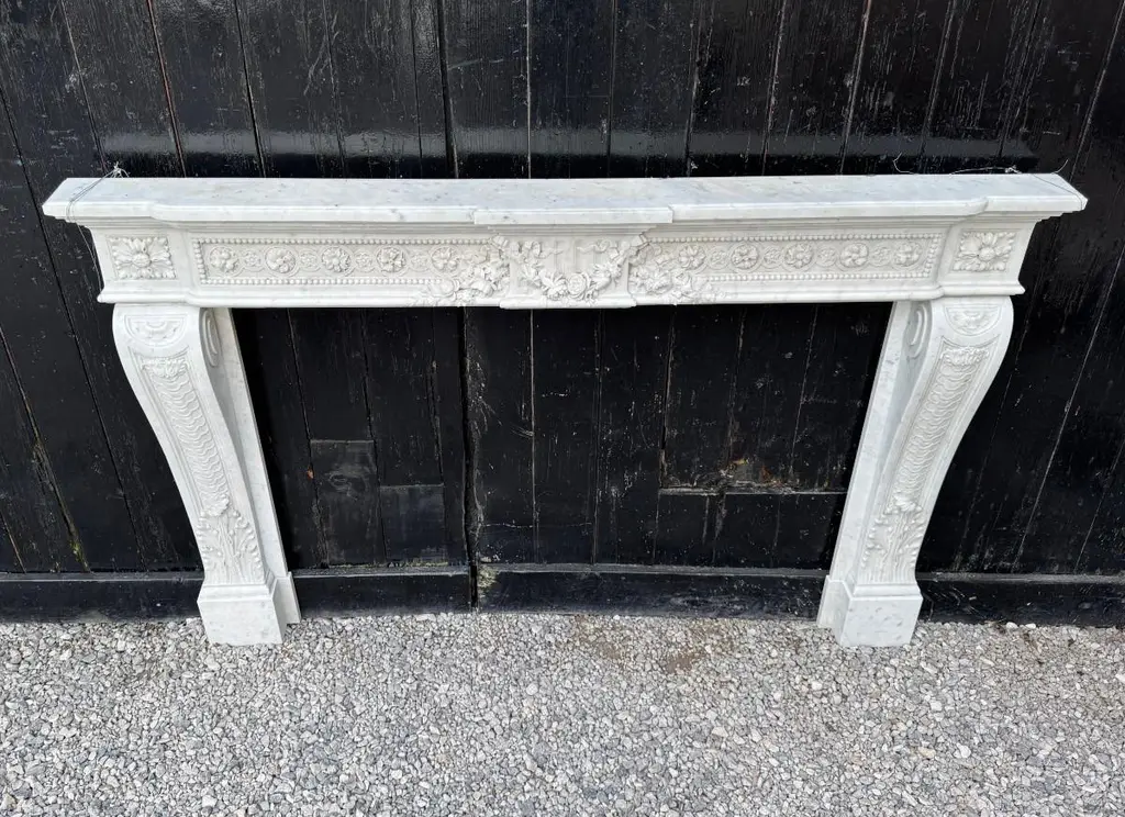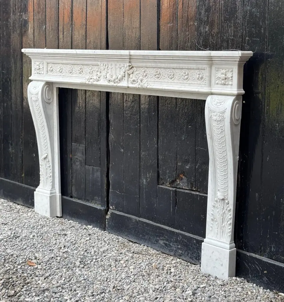 Louis XVI Style Very Finely Carved Carrara Marble Mantel circa 1880Fireplace dimensions: 91 x 131cm