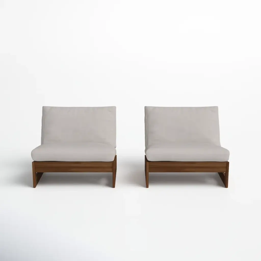 Louise Outdoor Armless Lounge Chair With Sunbrella Cushions (Set Of 2)