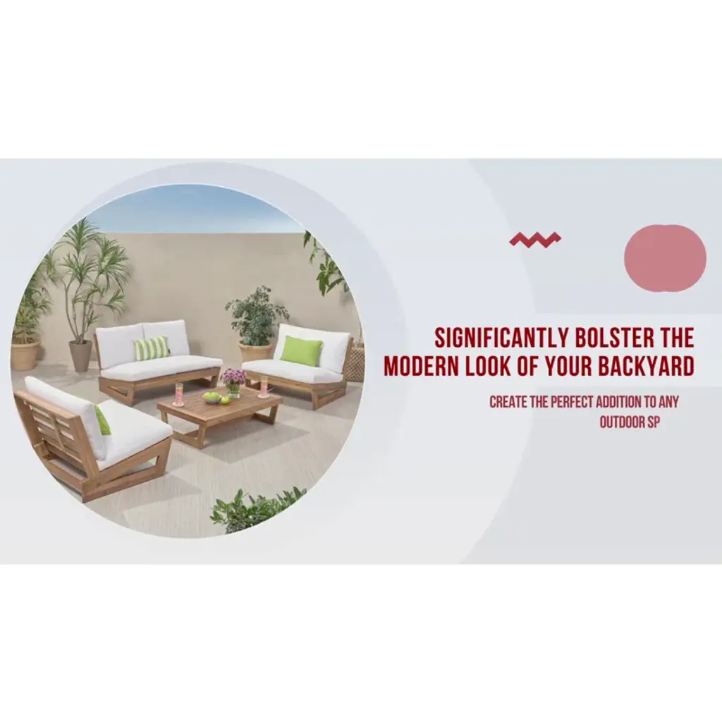 Low to the ground + slightly reclined, this pair of club chairs brings a laid-back feel to your backyard hangout space. Each chair has a sturdy frame built from solid acacia wood and softened by water-resistant Sunbrella® cushions with machine-washable covers – so you don’t have to worry about storms, spills, or splashes. The warm finish contrasts with the upholstery for a bold look.
