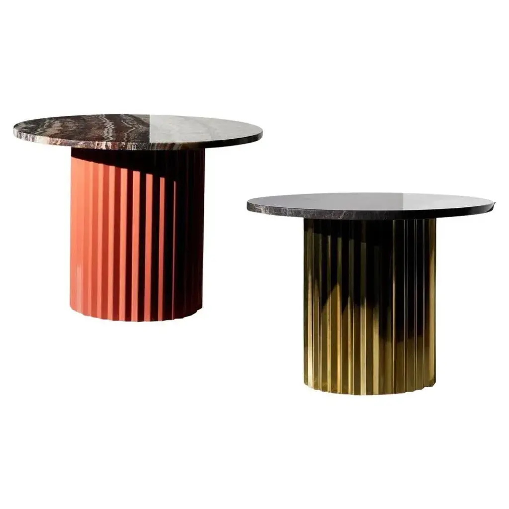 Set of 2 marble tables by Lisette Rützou Dimensions: D 60 x H 41 cm Materials: Marble tabletop, Brass Column Lisette Rützou’s design is motivated by an urge to articulate a story. Inspired by the beauty of materials, form and architecture, each design is an independent statement - contemporary functionalism with a feminine touch. Each piece tells an individual story – an embodiment of emotion