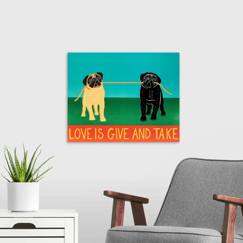 Love Is Give And Take Black And Tan Pugs wall art for home and office decor. Discover canvas art prints, photos, mural, big canvas art and framed wall art in GreatBigCanvas.com's varied collections.