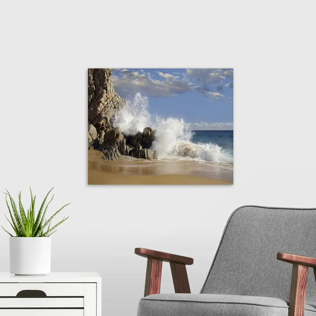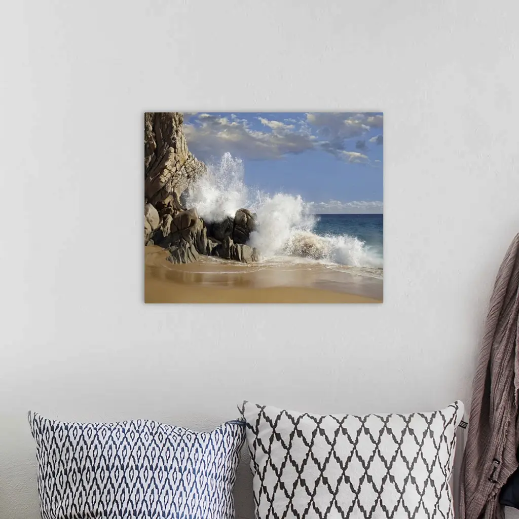 Lover's Beach with crashing waves, Cabo San Lucas, Mexico wall art for home and office decor. Discover canvas art prints, photos, mural, big canvas art and framed wall art in GreatBigCanvas.com's varied collections.