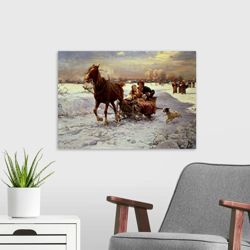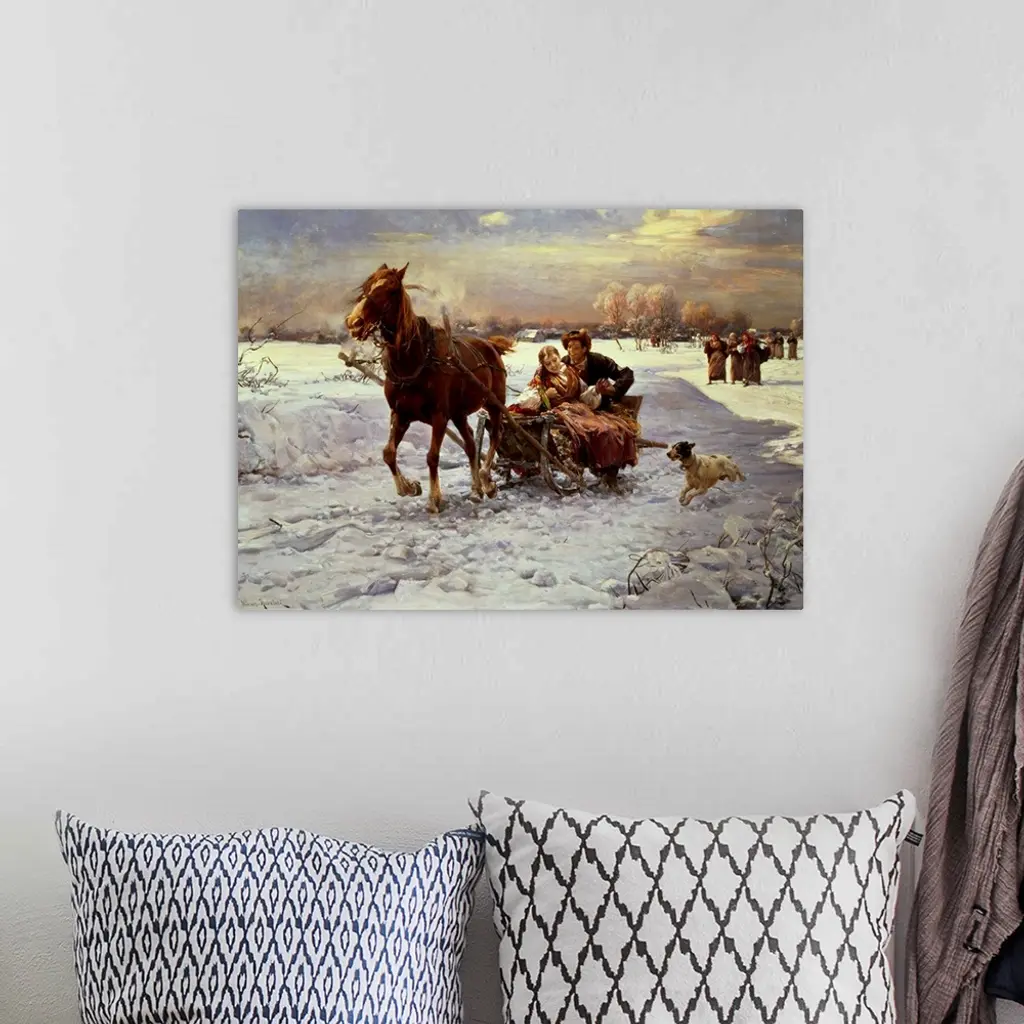 Lovers in a sleigh wall art for home and office decor. Discover canvas art prints, photos, mural, big canvas art and framed wall art in GreatBigCanvas.com's varied collections.
