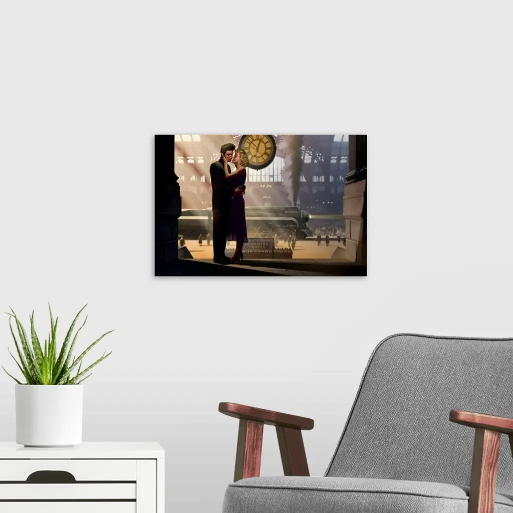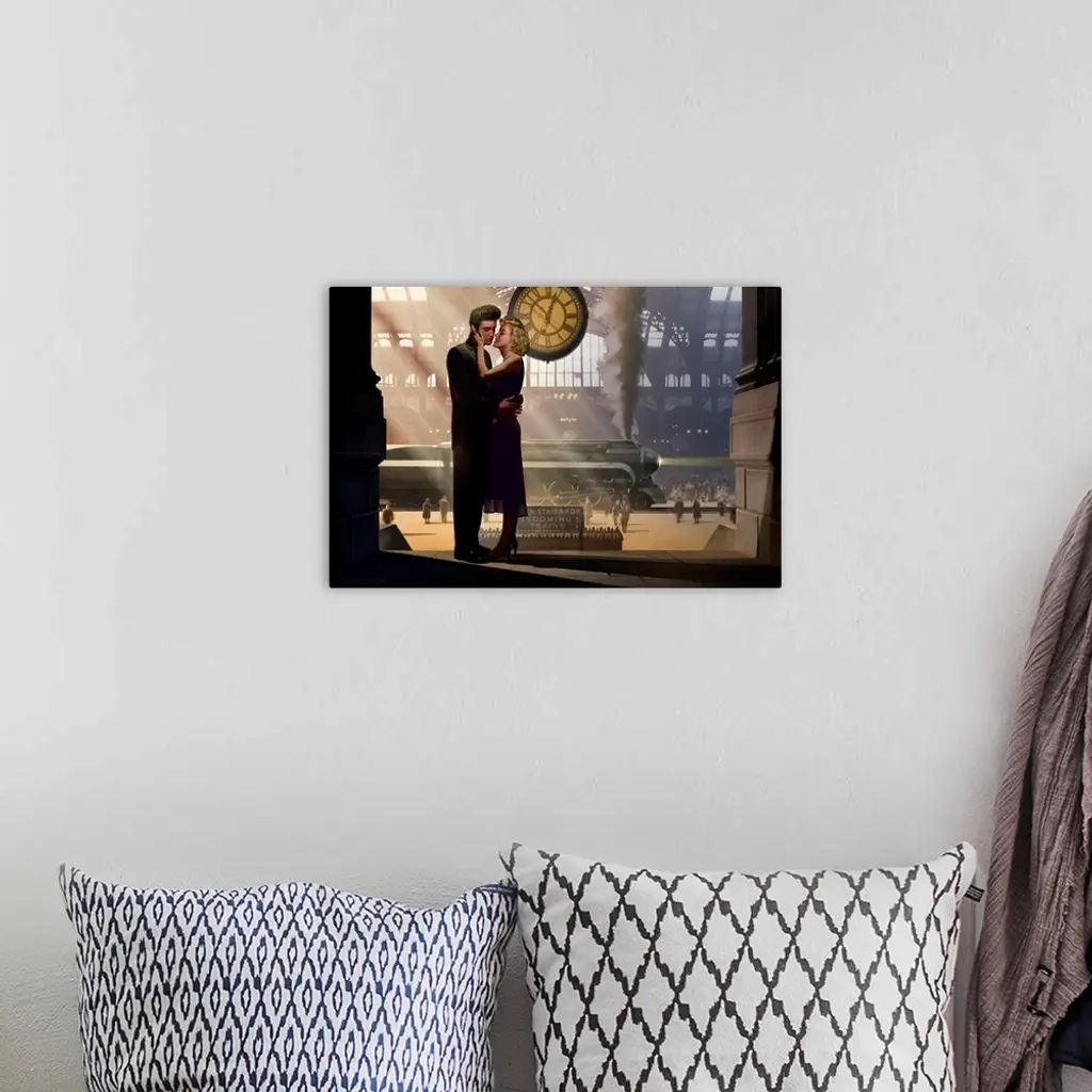 Chris Consani lends dark allure and masculine perspective to movie fantasy settings, showcasing iconic celebrities like Marilyn Monroe and Elvis at a train depot.