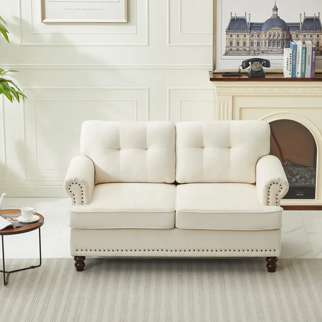 Loveseat Sofa, Modern Couches,button Tufted Sofa With Rolled Arm And Wooden Legs - N/a - White