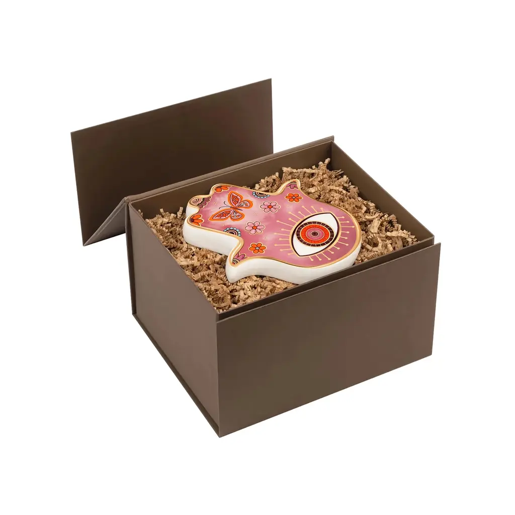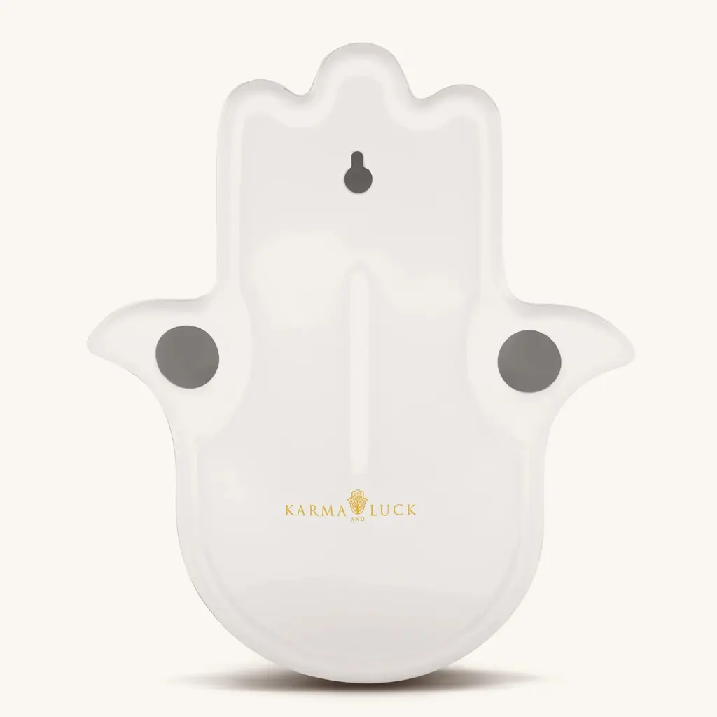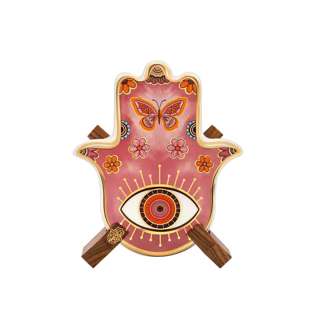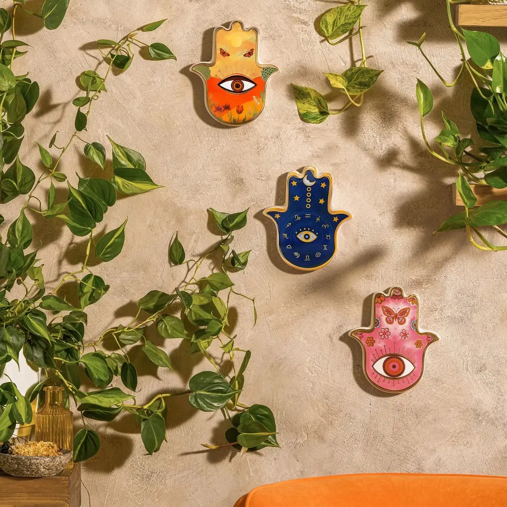 Give yourself the grace to grow, remembering to be gentle as you expand into new versions of yourself. Set on the backdrop of the protective Hamsa Hand, this ceramic wall hanging invites the resilient Butterfly and the intuitive Evil Eye to fill your home with supportive energy. Working together, these sacred symbols encourage you to embrace transformation with open arms. Step into new realities with the help of the “Loving Intentions Hamsa Wall Blessing”.