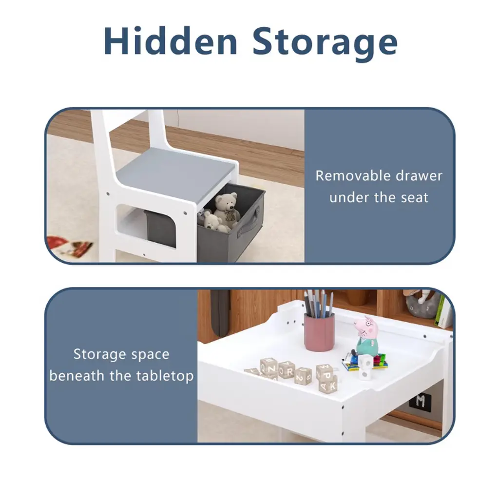 Lovson Children's 3-in-1 Table And Chair Set, With Storage Drawer For Drawing, Reading,crafts, Removable Table Top For Nurseries,playrooms