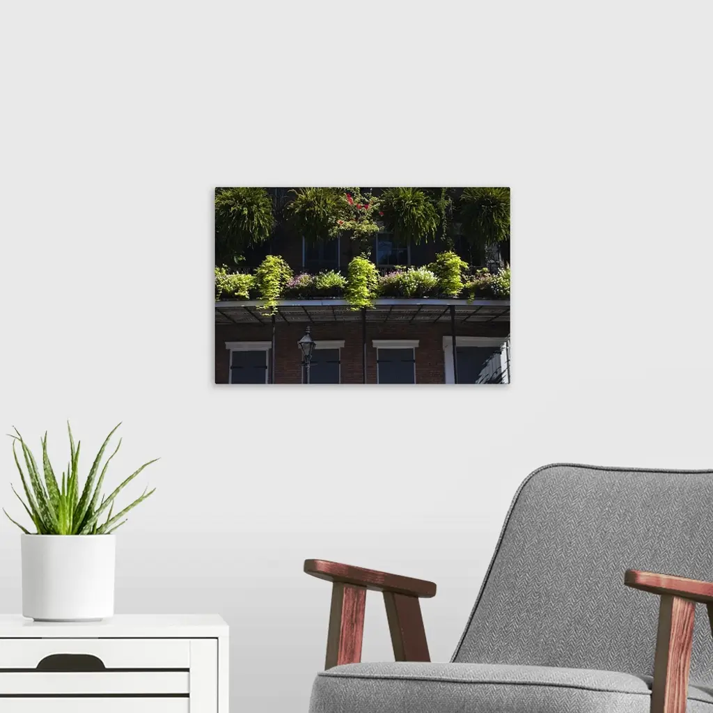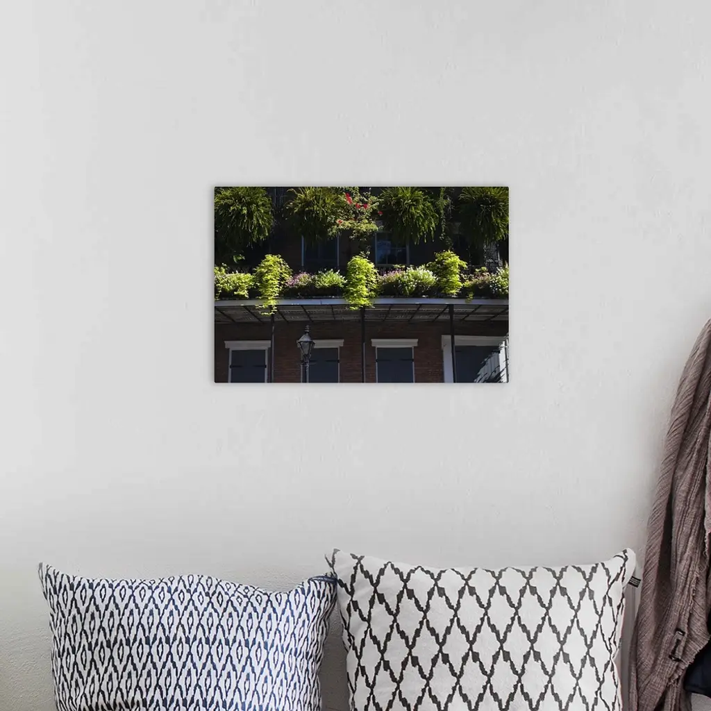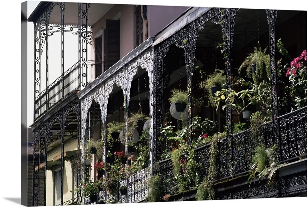 Low angle view of a balcony, French Quarter, New Orleans, Louisiana wall art for home and office decor. Discover canvas art prints, photos, mural, big canvas art and framed wall art in GreatBigCanvas.com's varied collections.