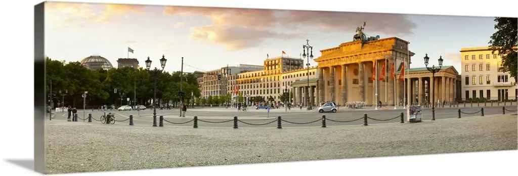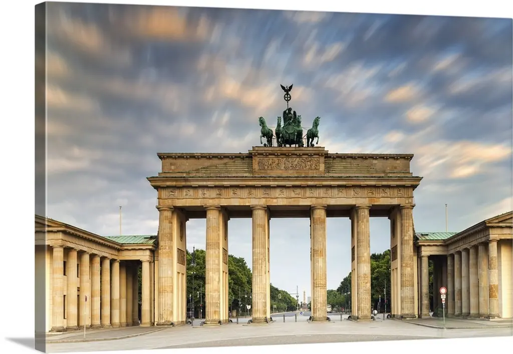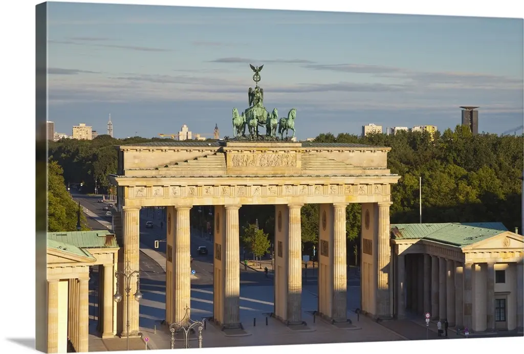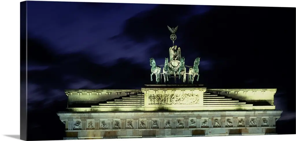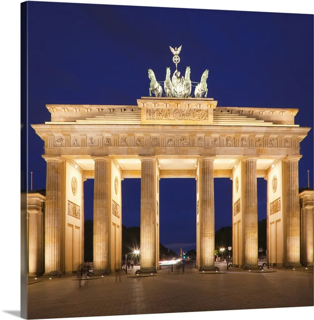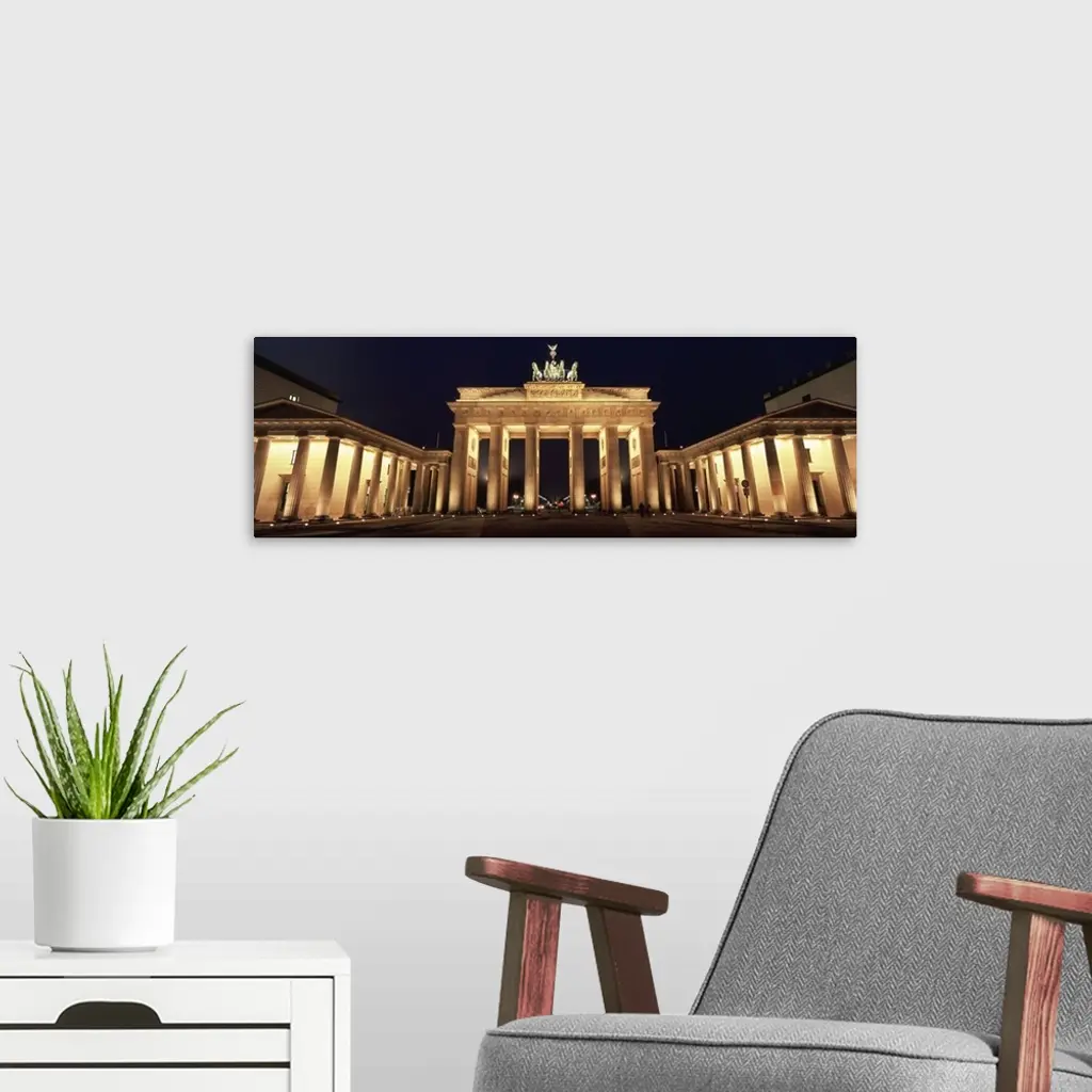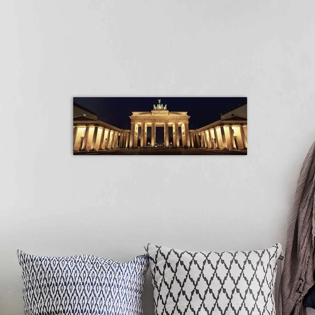 Low angle view of a gate lit up at night, Brandenburg Gate, Berlin, Germany wall art for home and office decor. Discover canvas art prints, photos, mural, big canvas art and framed wall art in GreatBigCanvas.com's varied collections.