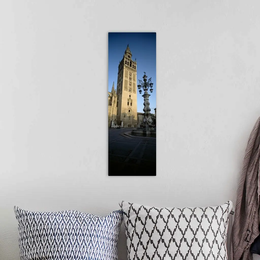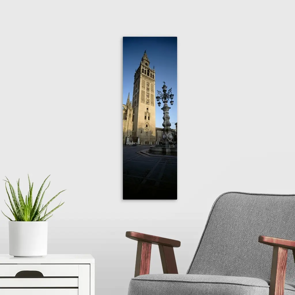 Low angle view of a lamppost in front a church, La Giralda, Seville Cathedral, Seville, Seville Province, Andalusia, Spain wall art for home and office decor. Discover canvas art prints, photos, mural, big canvas art and framed wall art in GreatBigCanvas.com's varied collections.