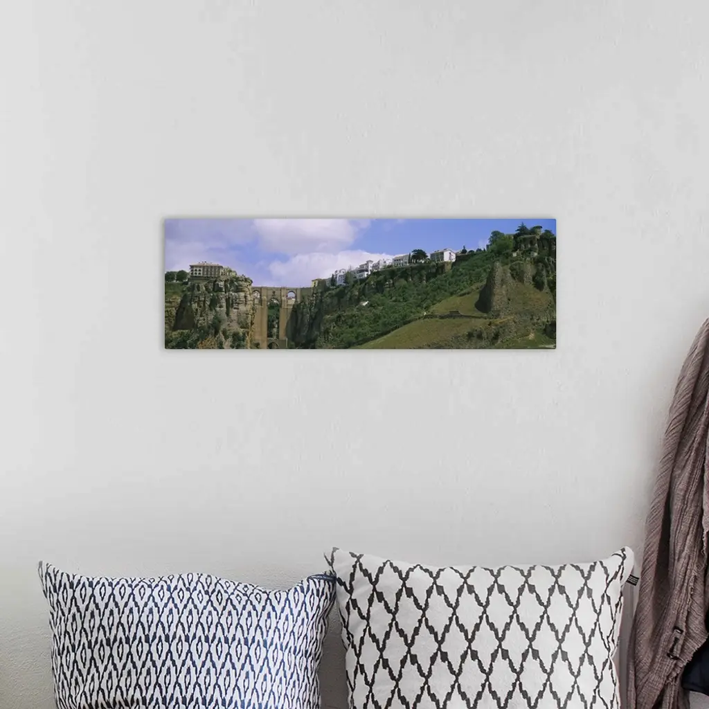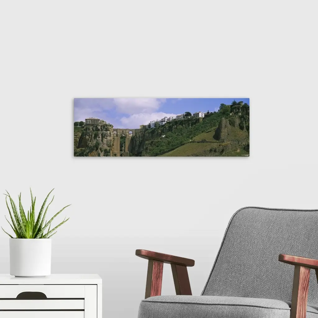Low angle view of a town, Tajo Bridge, Rio Guadalevin Gorge, Serrania De Ronda, Ronda, Andalusia, Spain wall art for home and office decor. Discover canvas art prints, photos, mural, big canvas art and framed wall art in GreatBigCanvas.com's varied collections.