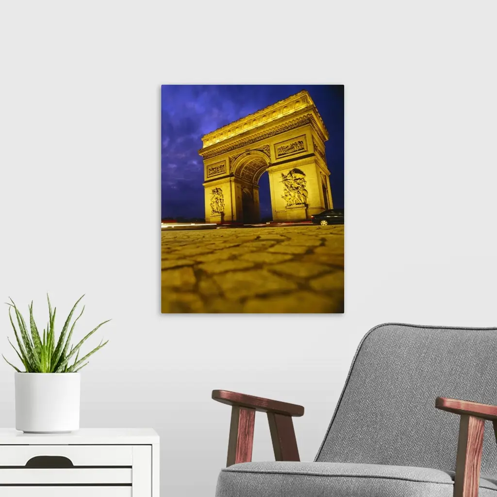 Low angle view of a triumphal arch, Arc De Triomphe, Paris, France wall art for home and office decor. Discover canvas art prints, photos, mural, big canvas art and framed wall art in GreatBigCanvas.com's varied collections.