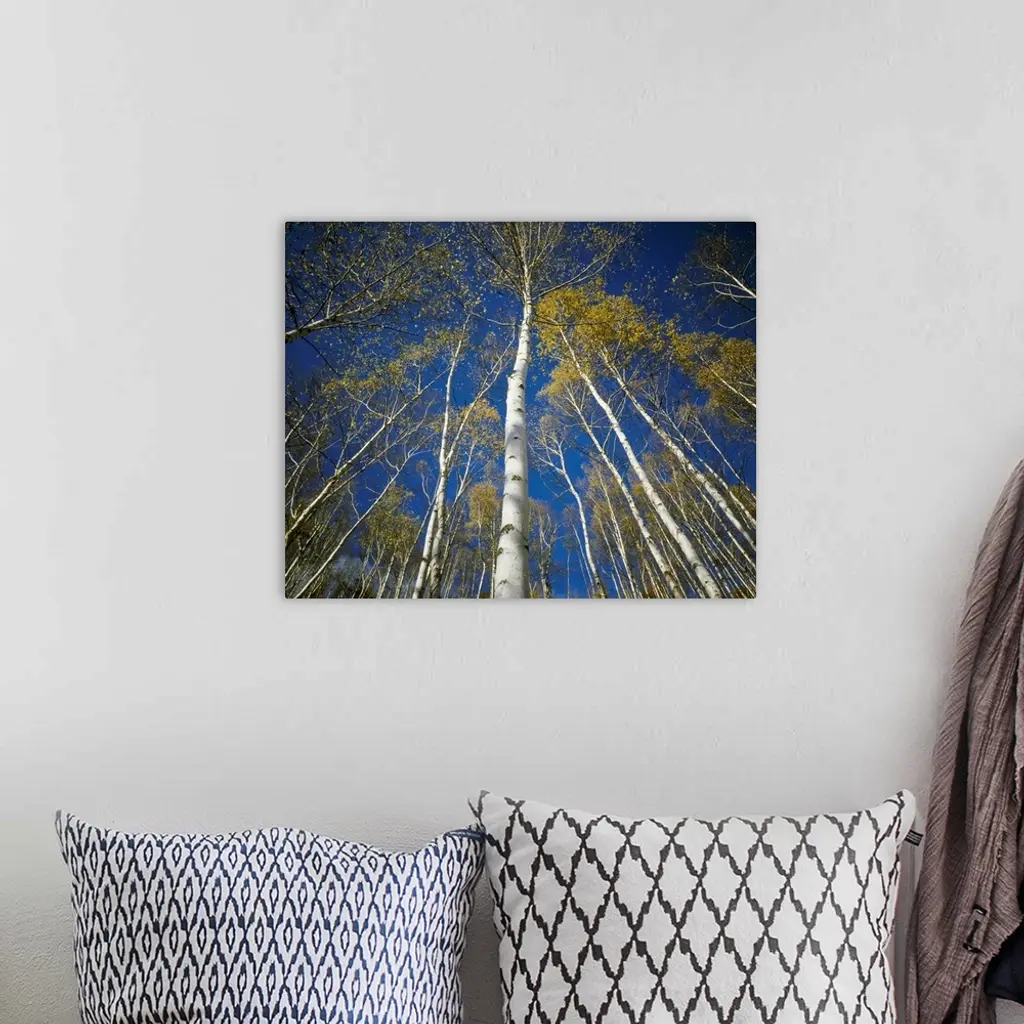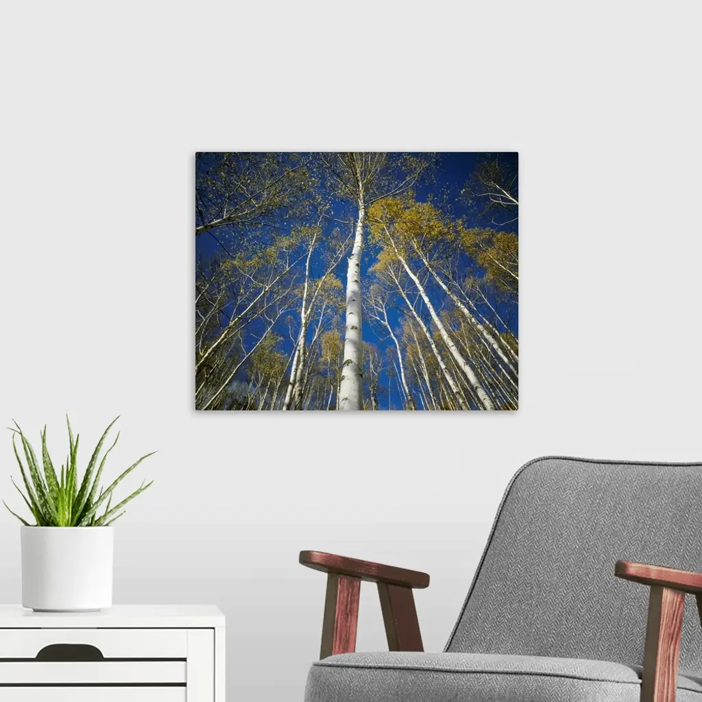 Low angle view of birch trees, Iwate Prefecture, Tohoku Region, Japan wall art for home and office decor. Discover canvas art prints, photos, mural, big canvas art and framed wall art in GreatBigCanvas.com's varied collections.