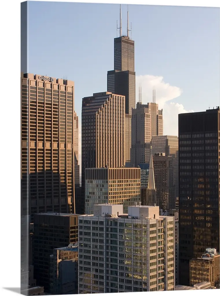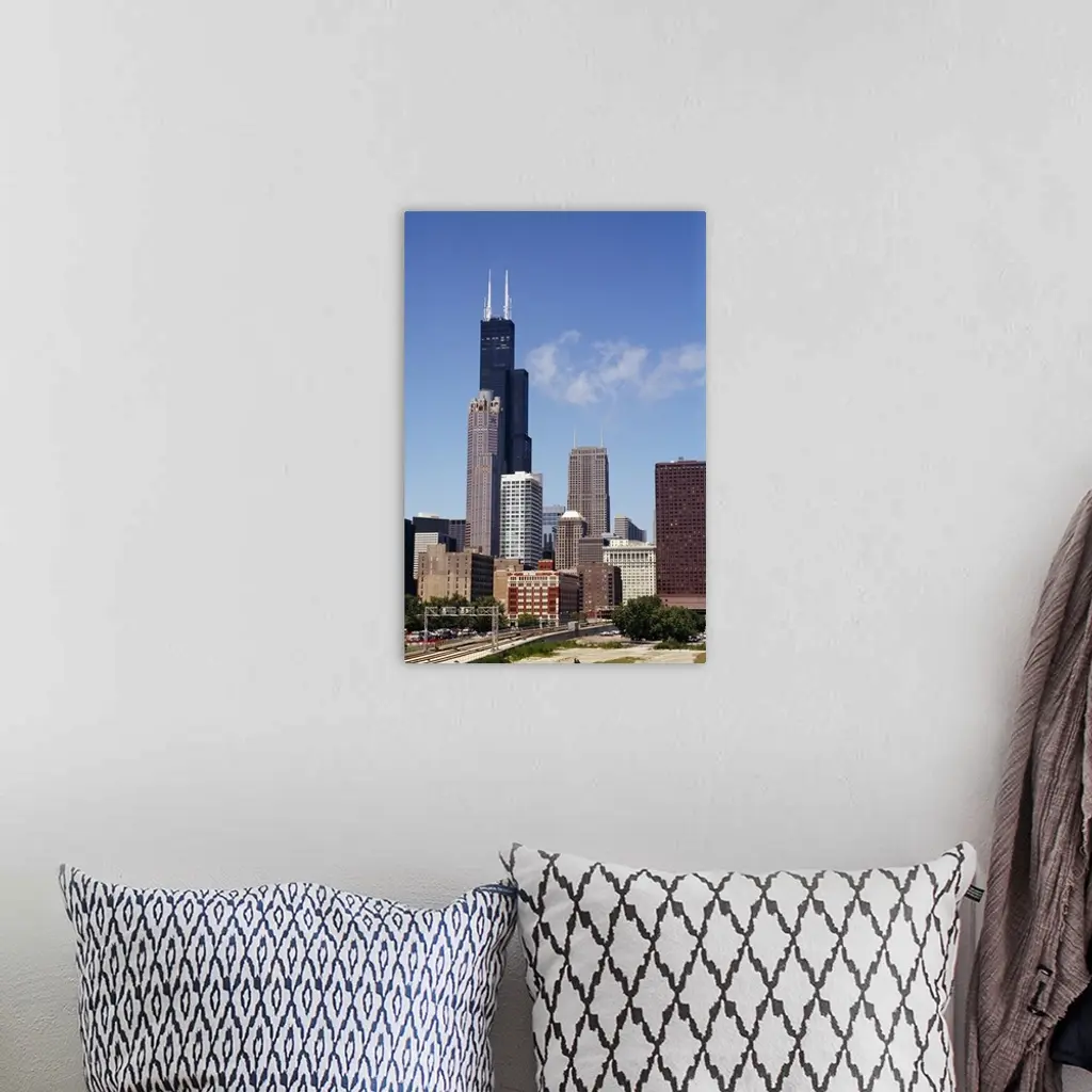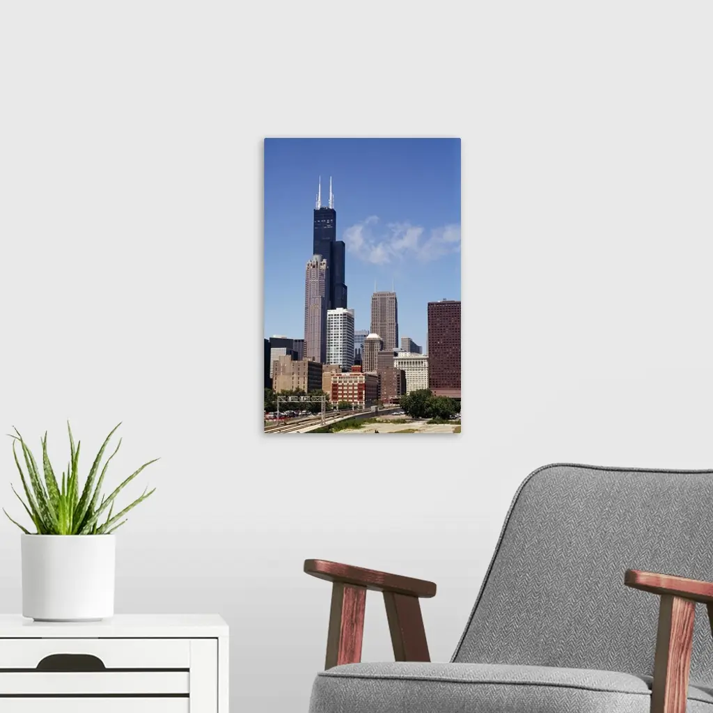 Low angle view of buildings, Sears Tower, Chicago, Illinois wall art for home and office decor. Discover canvas art prints, photos, mural, big canvas art and framed wall art in GreatBigCanvas.com's varied collections.