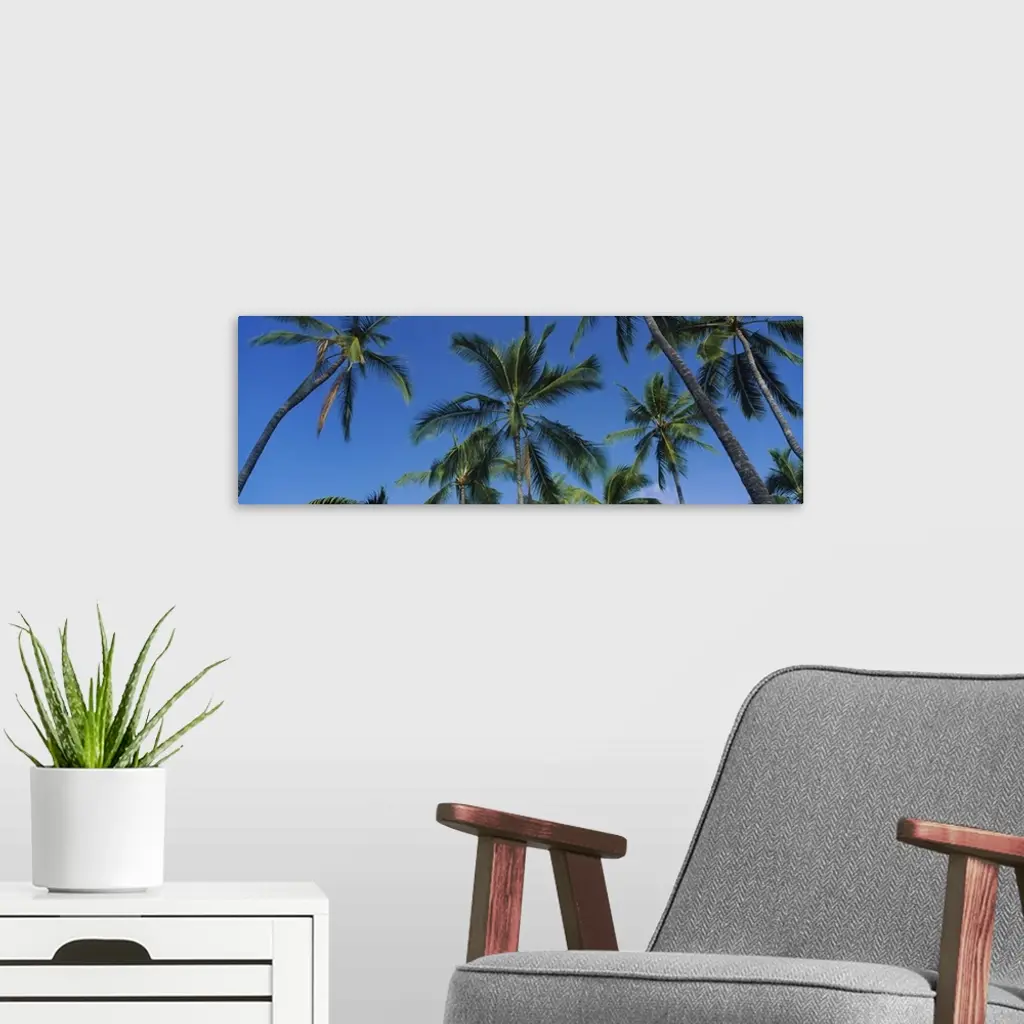 Low angle view of palm trees, Kona Coast, Big Island, Hawaii wall art for home and office decor. Discover canvas art prints, photos, mural, big canvas art and framed wall art in GreatBigCanvas.com's varied collections.