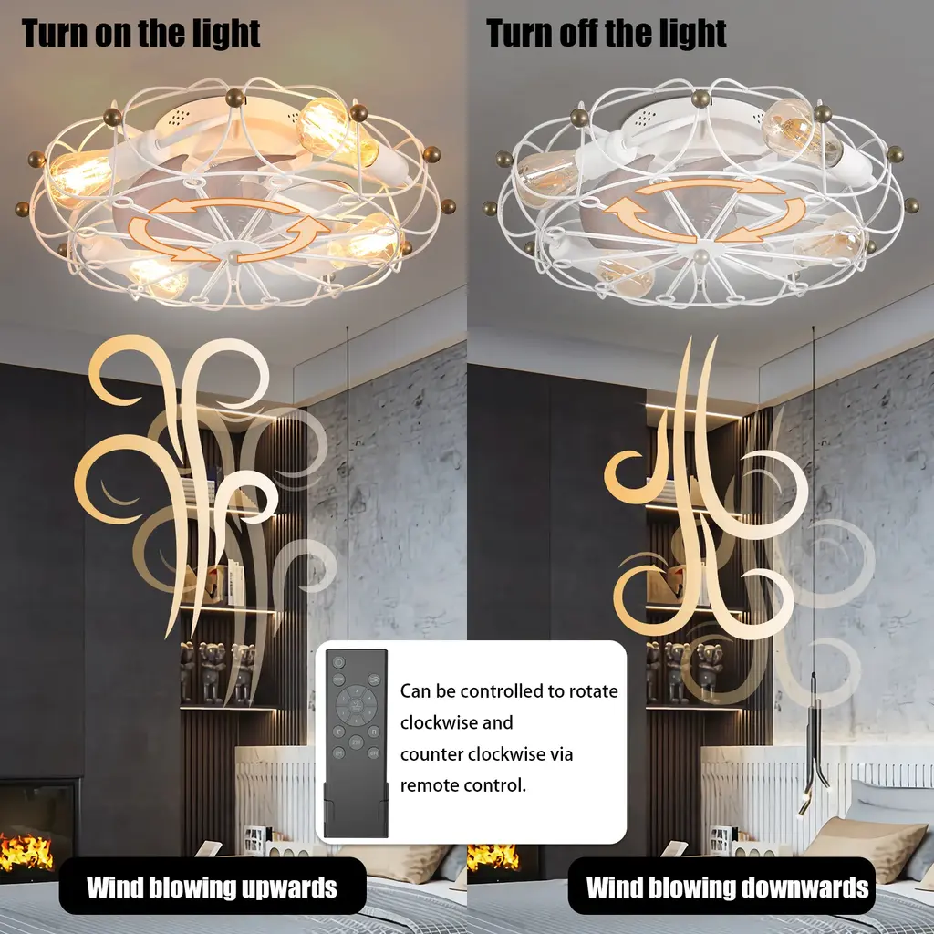 Low Profile Caged Ceiling Fan With Lights Remote Control, Embedded Modern Industrial Ceiling Fan - White